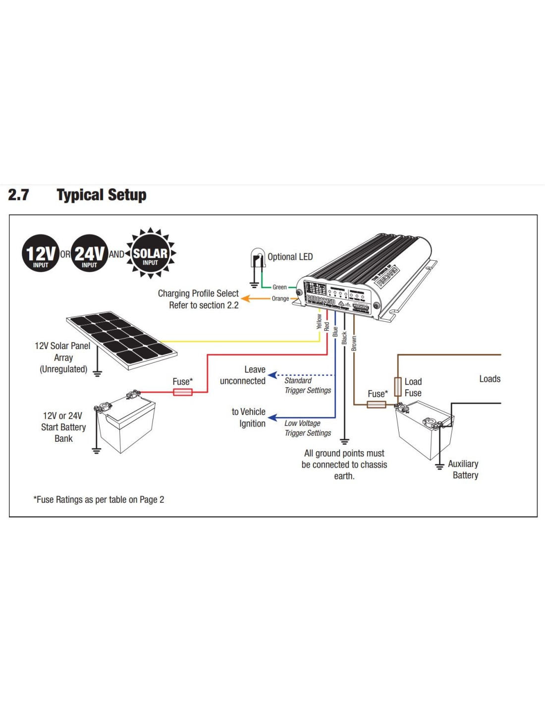 Das Gerät ist für 12- oder 24-Volt-Fahrzeugsysteme geeignet und funktioniert auch mit Standard- oder variablen/intelligenten Lichtmaschinen.