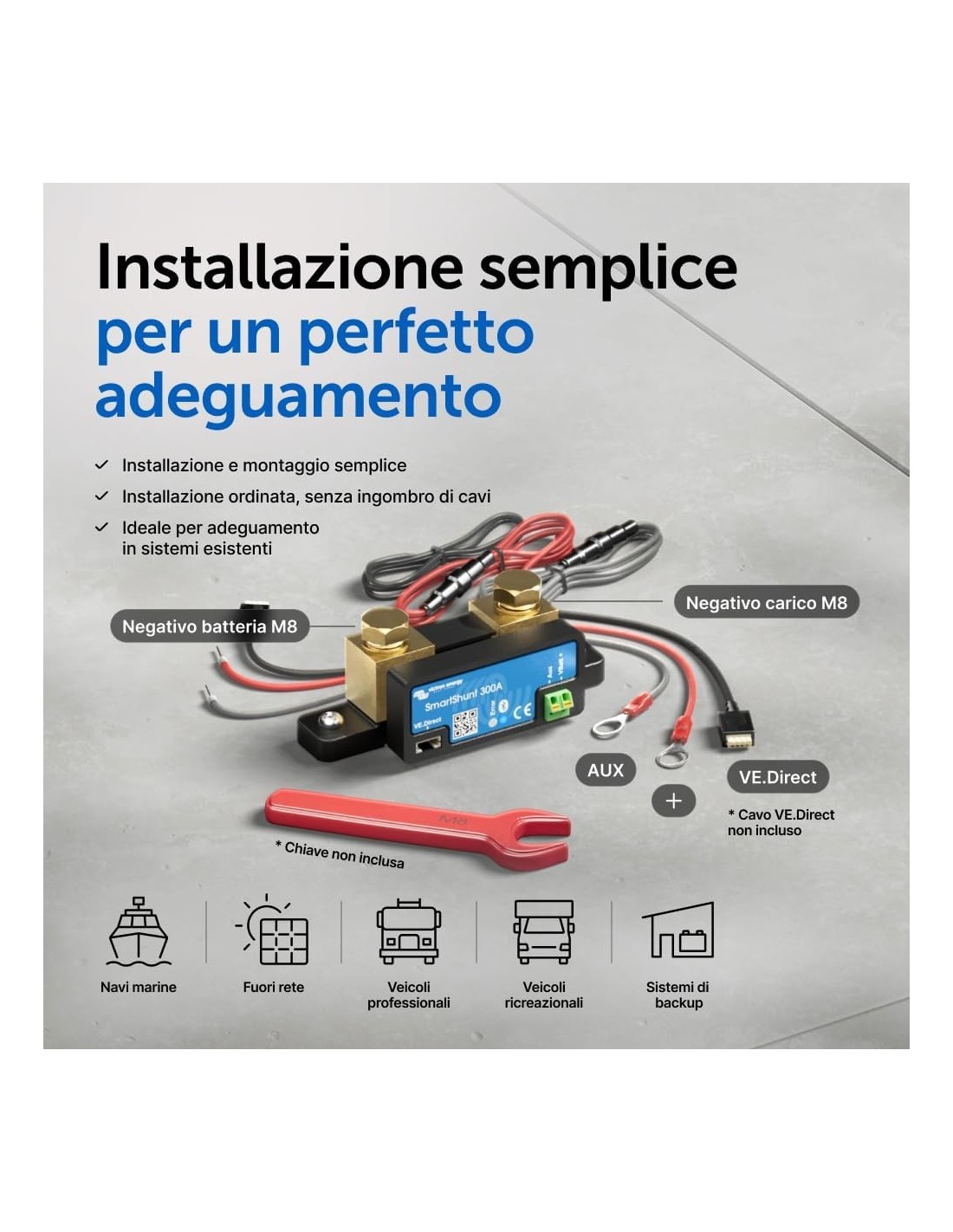 SmartShunt ist eine großartige Alternative zum BMV-Batteriemonitor, insbesondere für Systeme, bei denen eine Batterieüberwachung erforderlich ist, Sie aber Verkabelung und Unordnung minimieren möchten. SmartShunt verfügt über Bluetooth, einen VE.Direct-Anschluss und eine Verbindung, die zur Überwachung einer zweiten Batterie, zur Überwachung des Mittelpunkts oder zum Anschluss eines Temperatursensors verwendet werden kann.
