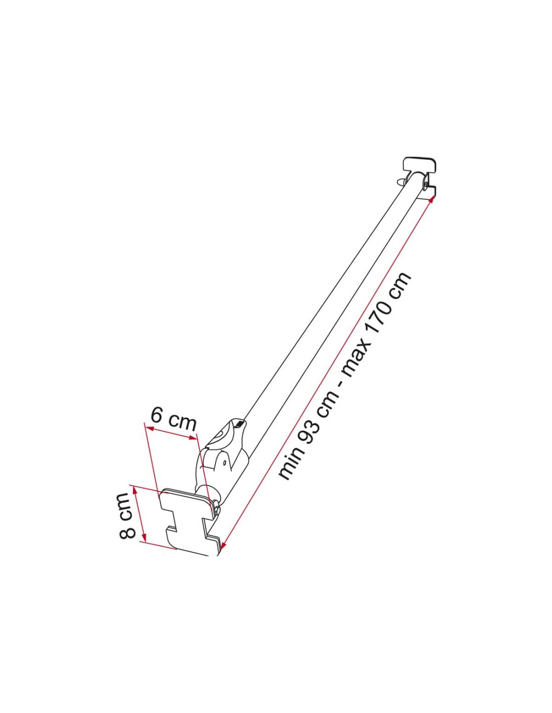 Stabile Teleskopstange, ideal um Gegenstände während der Fahrt einfach und sicher in den Schließfächern oder der Essecke Ihres Fahrzeugs zu befestigen.