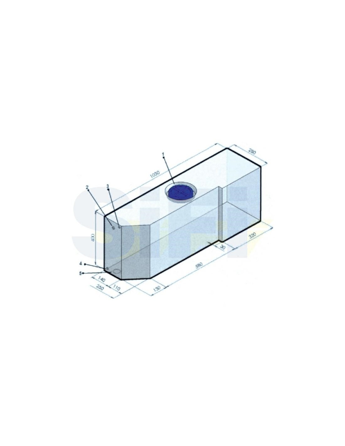 Wassertanks Weißes Polyethylen mit eingebautem Inspektionsdeckel Ø 140 mm von kleiner Größe