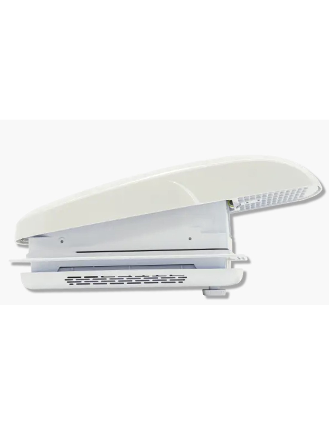 Inklusive Ventilator mit Plissee und Moskitonetz sowie im unteren Rahmen integrierter LED-Beleuchtung.