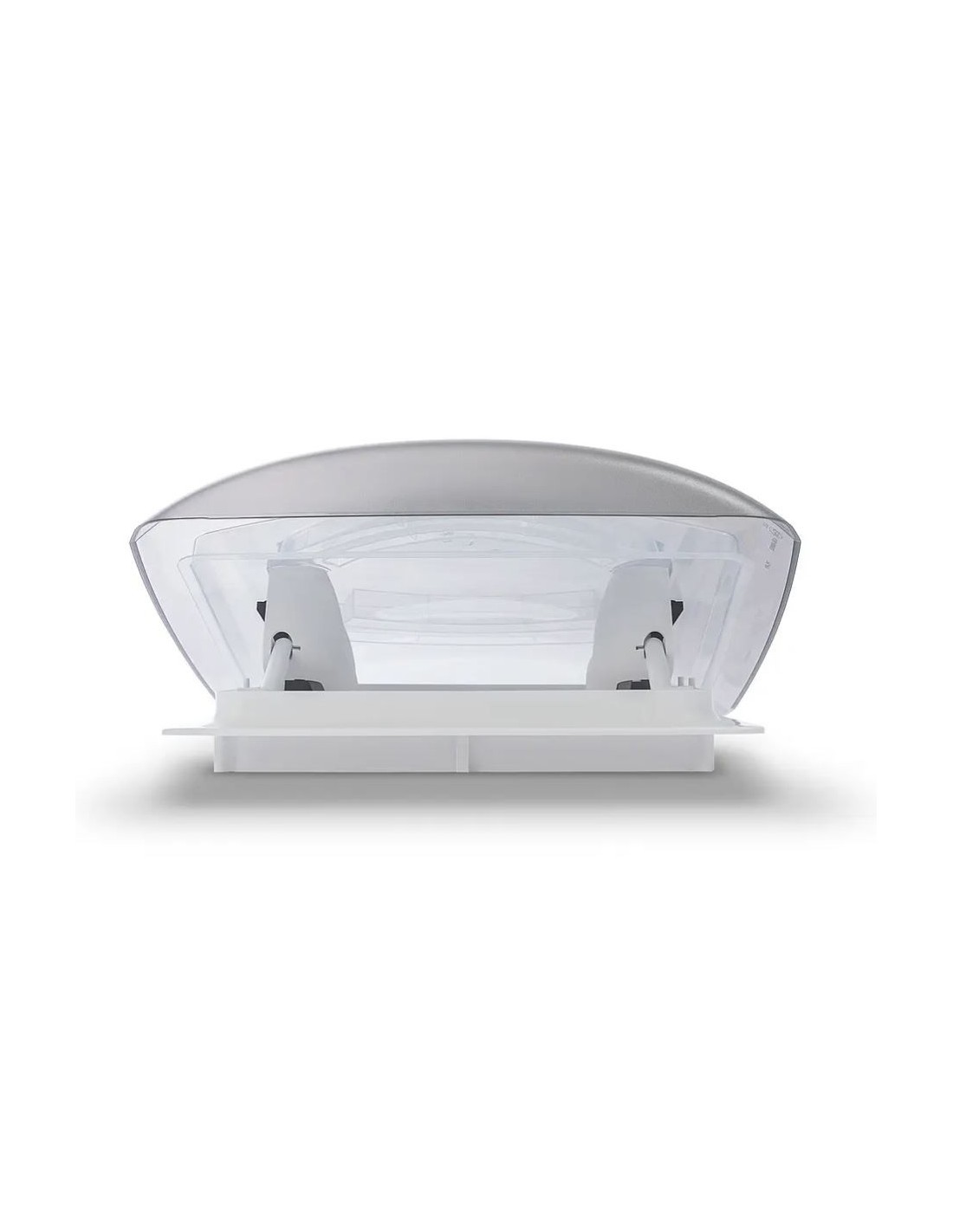 Modernes Bullauge mit innovativem Kondenswasserschutz und verbesserter Aerodynamik. Deckel mit innenliegender Belüftungshaube. Aerodynamische Schale. Reduziert Zugluft trotz kontinuierlicher Belüftung.