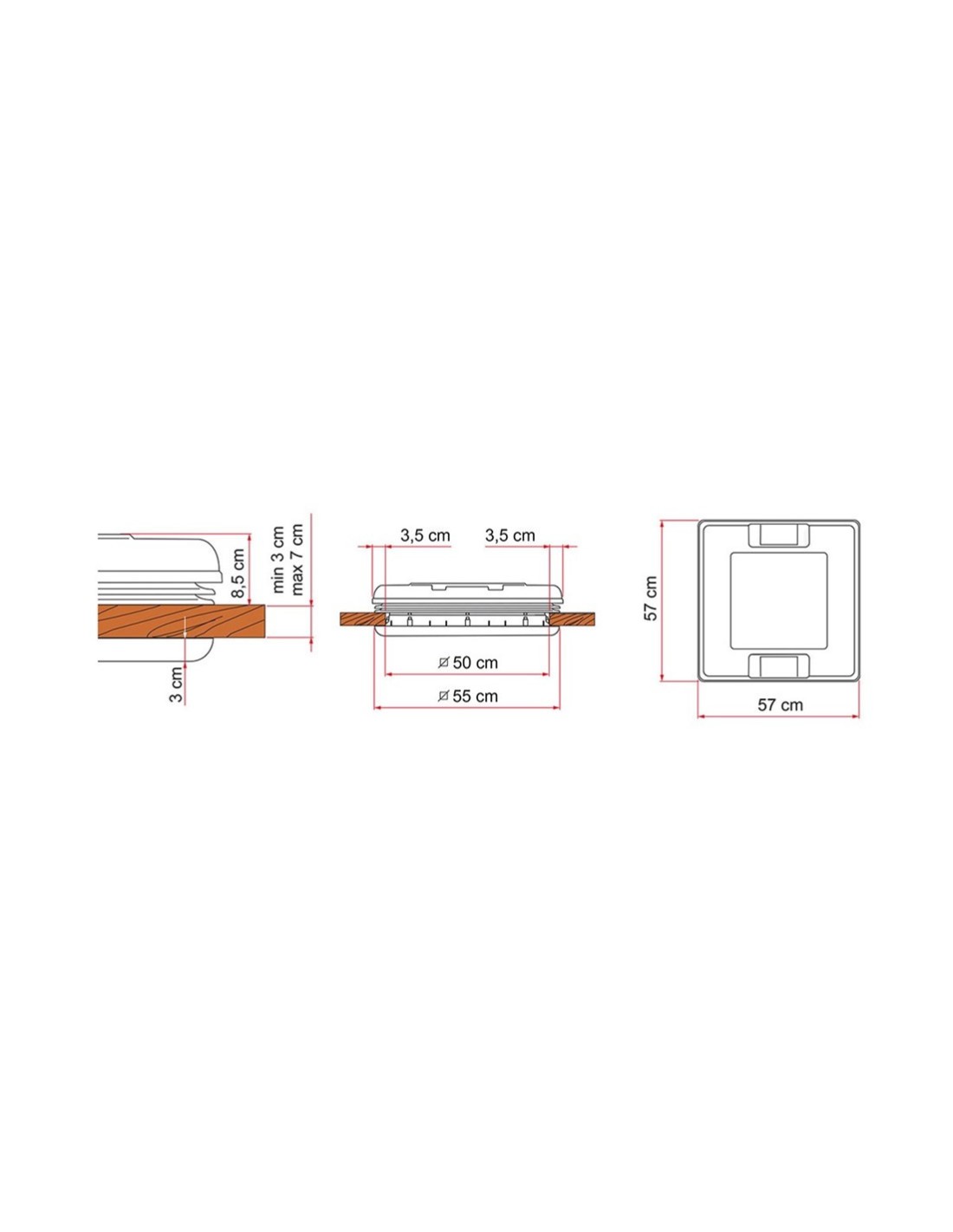 - Lochgröße: 490 x 490 mm