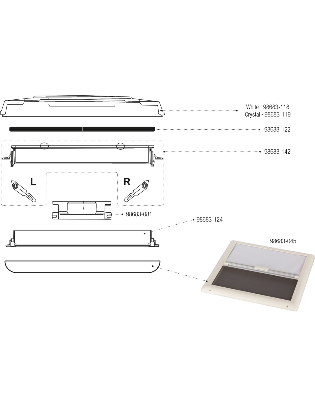 Bullaugenlüftung 50 Crystal FIAMMA mit Stromausfall und Moskitonetz - 01668-02D