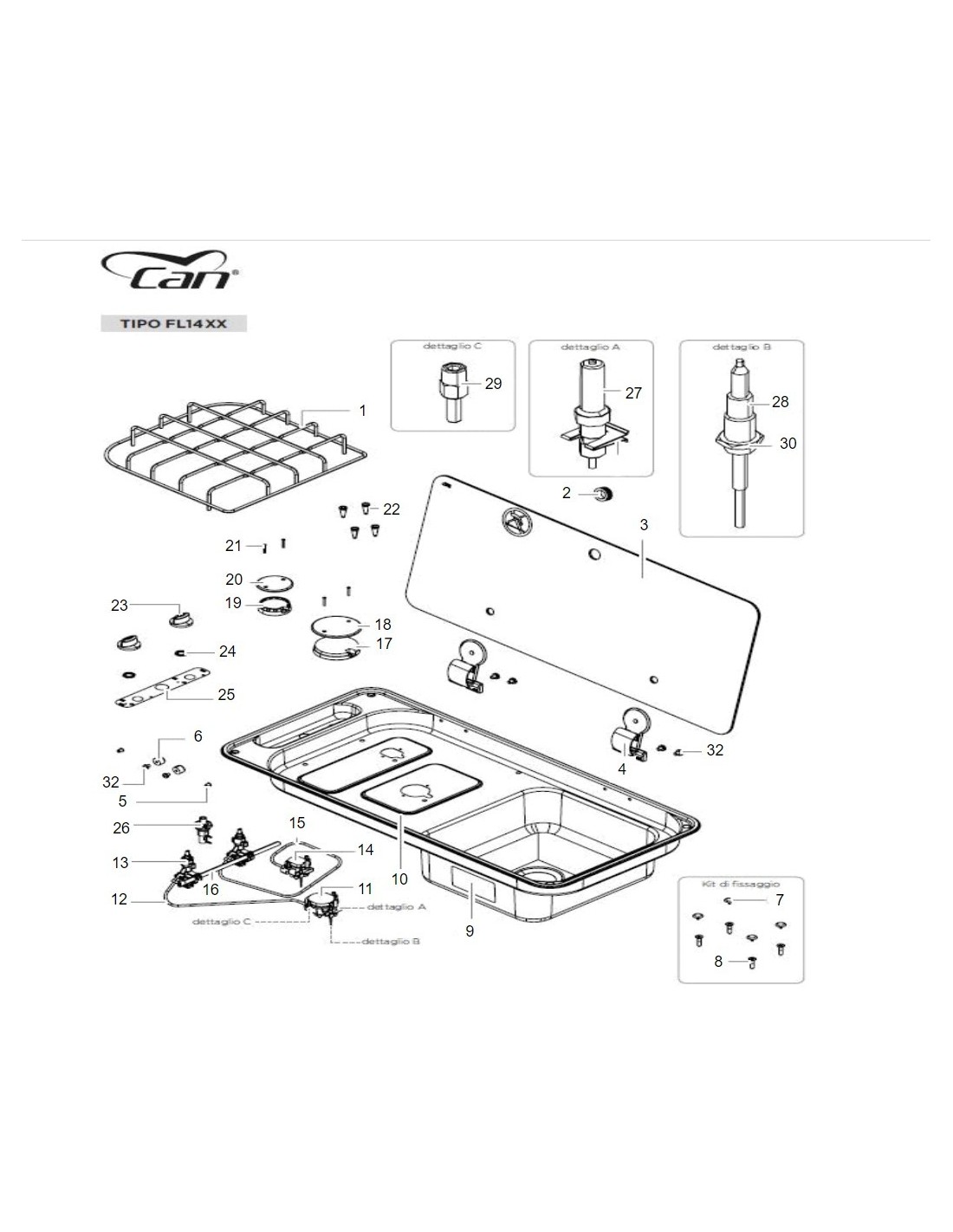 Brenner: alle Brenner sind mit einem Thermoelement (Sicherheitsventil) ausgestattet