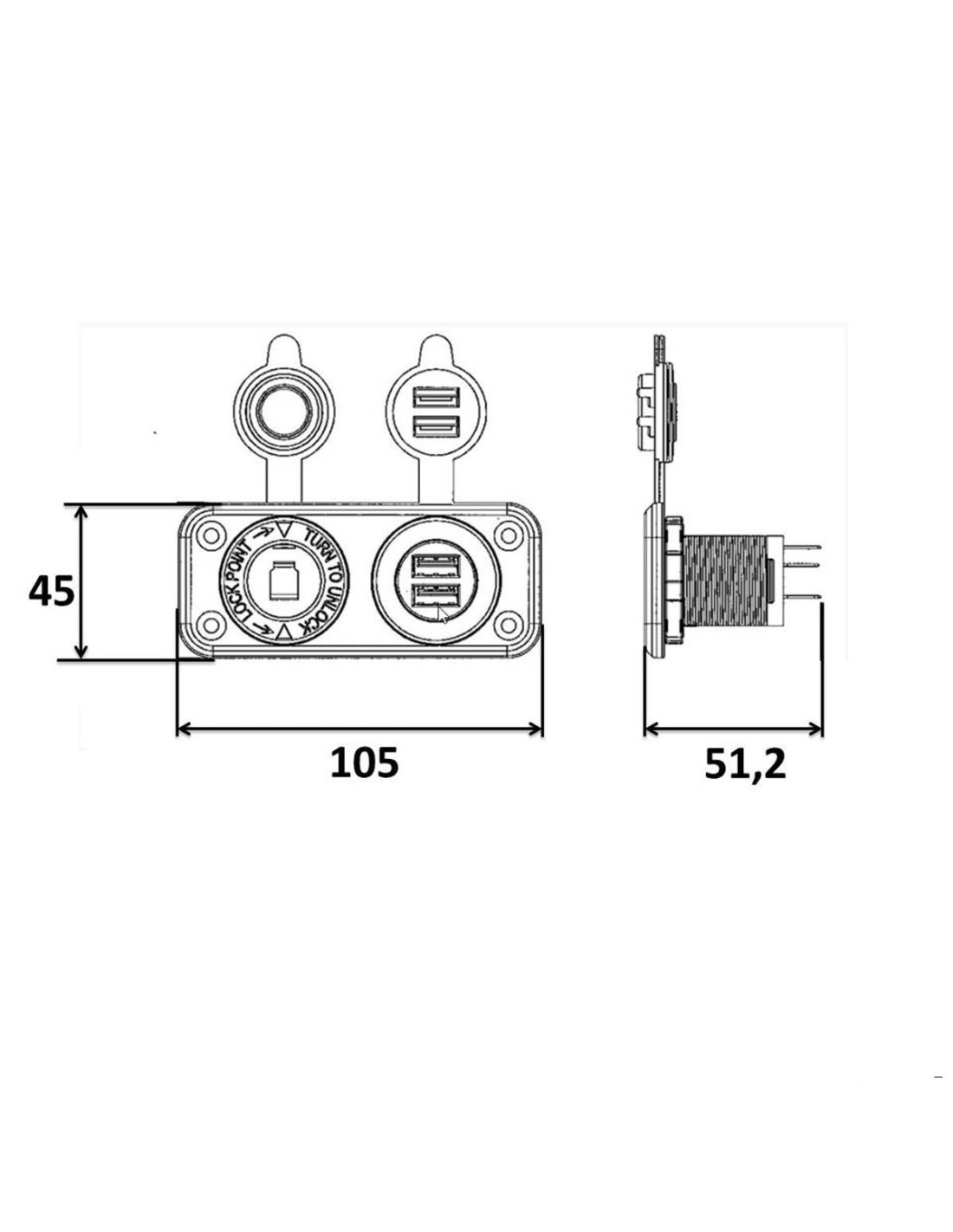 12 / 24V Steckdose mit Schutzabdeckung (nicht für Zigarettenanzünder geeignet).