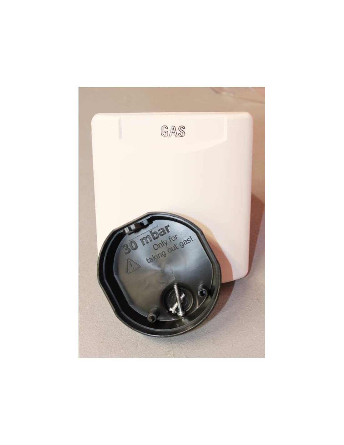 GOK Graue Gassteckdose mit weißem Schwenkdeckel
