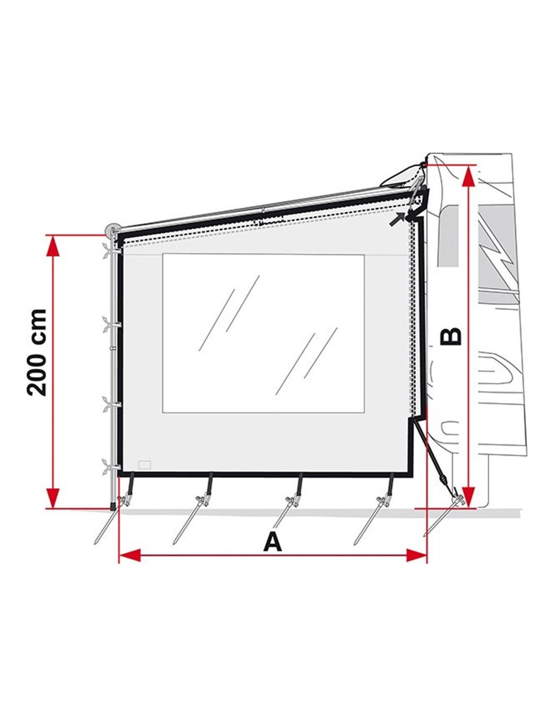 Seitenverschluss aus Vinyl mit großem Kristallfenster und grauer Verlängerung zum Boden; verrottungsfest, UV-beständig und waschbar.