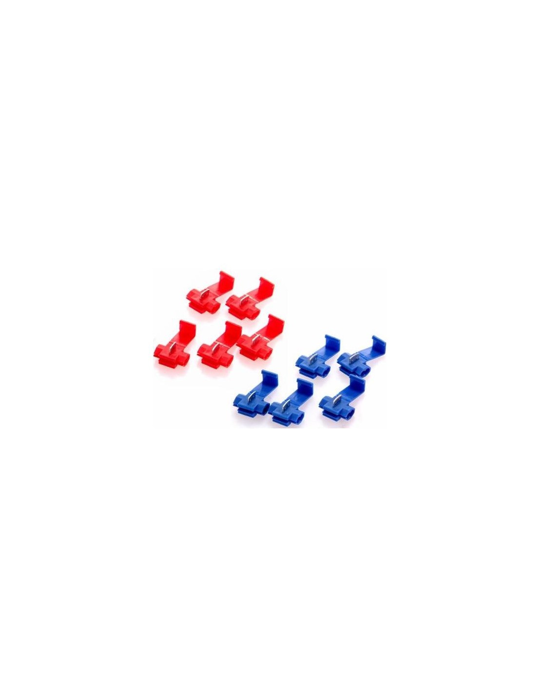 Kit 40 Flachklemmen 6,3 x 8 mm mit Doppelkupplung - Blau Misst 6,3 x 0,8 mm. Zusammengesetzt aus: 20 Kabelschuhe "männlich", 20 Kabelschuhe „weiblich“. Vorisoliert für Kabel von 1,5 bis 2,5 mm²