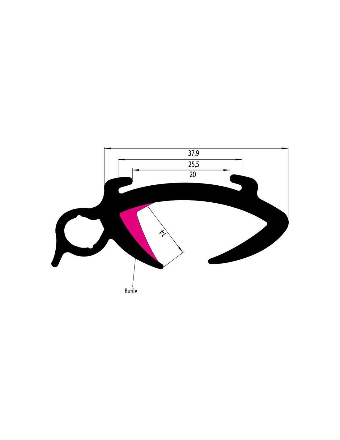 4 m Dichtung für Wandstärken von 32 bis 36 mm, zur Herstellung eines Gummirahmens mit Fensterkitt
