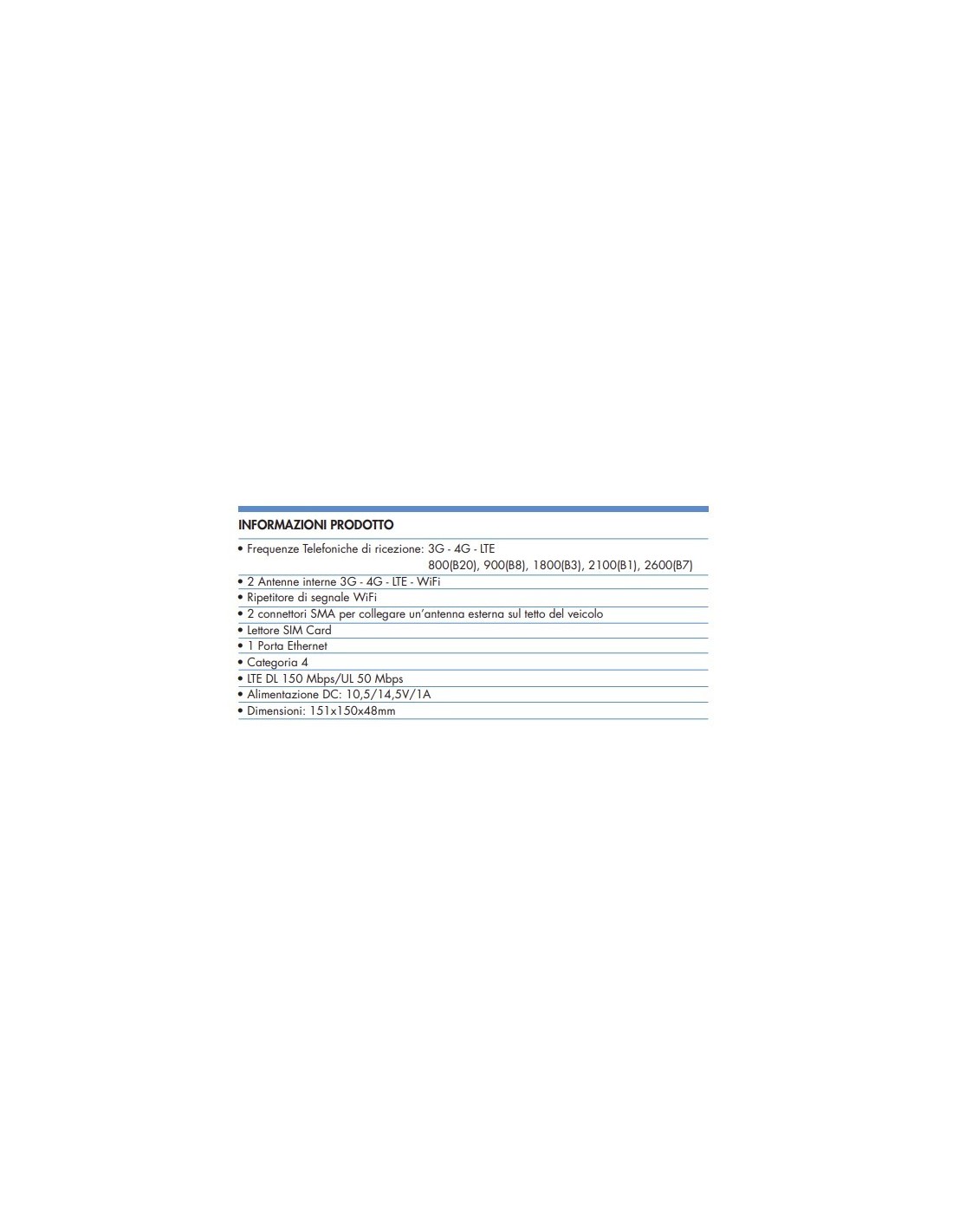 Wenn Sie Ihr Wohnmobil vollständig autonom machen und die WEB-Verbindung optimal nutzen möchten, selbst an isolierten Orten, können Sie Ihrem TELECO Phone Booster Van einen tragbaren Wi-Fi T400 VAN vom Typ Router hinzufügen (separat zu erwerben), der mit 12 Volt arbeitet und das verstärkte 4G-3G-Signal des Boosters in eine WLAN-Quelle umwandelt, mit der Sie Ihr Tablet oder Ihren SMART-TV frei nutzen können, um eine Filme oder Ihre Lieblingsserie auf NETFLIX, ohne ständige Unterbrechungen.