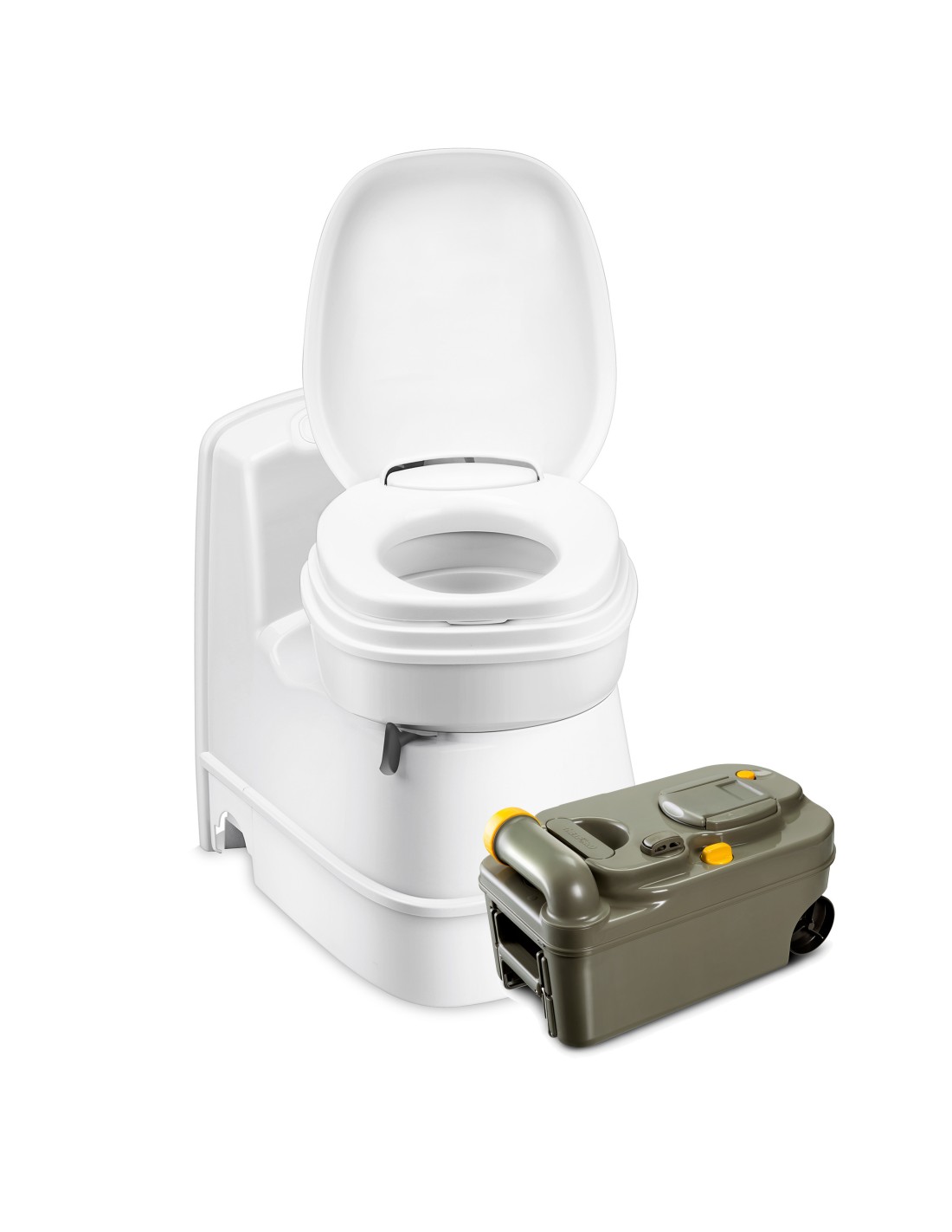 Cassettentoilette C262 CWE THETFORD Abmessungen (H x B x T): 750 x 417 x 603 mm Sitzhöhe: 467 mm Farbe: weiß Abgasanlage: elektrisch Fassungsvermögen des Fäkalientanks: 17,5 Liter Fassungsvermögen des Toilettentanks: 8 Liter Keramikbecher: optional Nettogewicht: 7,9 kg / 17,2 kg * Sein abnehmbarer Fäkalientank ist die beste sanitäre Lösung für Ihren...