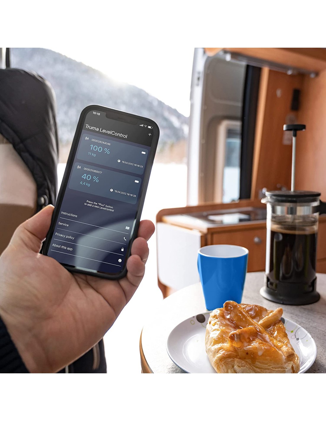 Mit der kostenlosen Truma App können die Messwerte bequem auf dem Smartphone oder Tablet eingesehen werden.