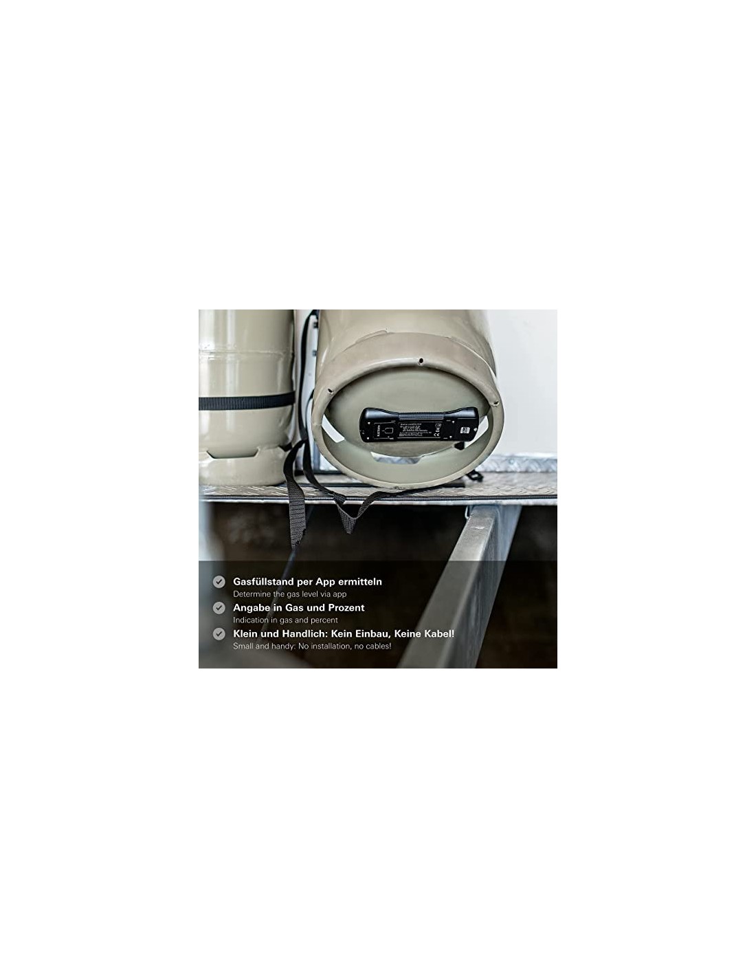 - Es erfasst präzise den Gasfüllstand in Stahl- und Aluminium-LPG-Flaschen mit einem Durchmesser zwischen 200 und 350 mm