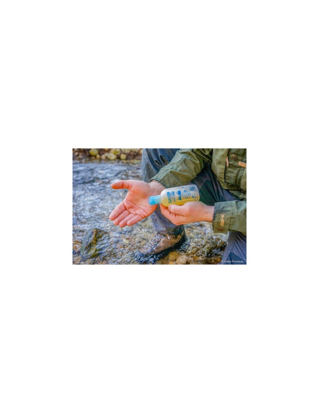 Die Bio-Seife von Pharmavoyage ist eine vielseitige Outdoor-Seife, biologisch abbaubar und kann daher problemlos in der Natur verwendet werden. Eine sehr kleine Menge reicht aus. Es ist der ideale Begleiter beim Wandern, Camping oder Reisen und eignet sich zum Waschen von Körper, Haaren, Kleidung oder Geschirr.