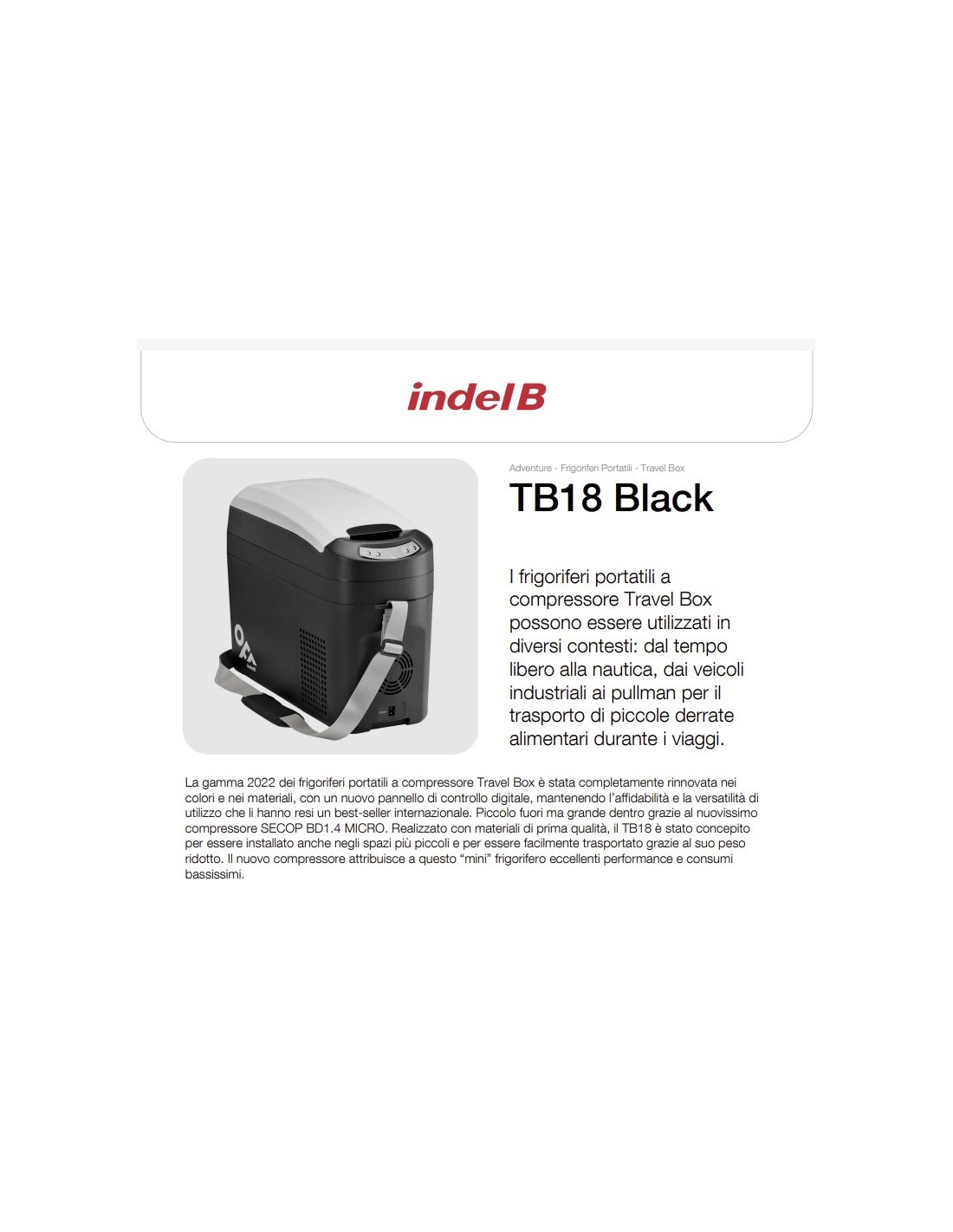 TRAGBARE KÜHLSCHRANK TB18 18L 12/24V INDELB (bis - 18°C)