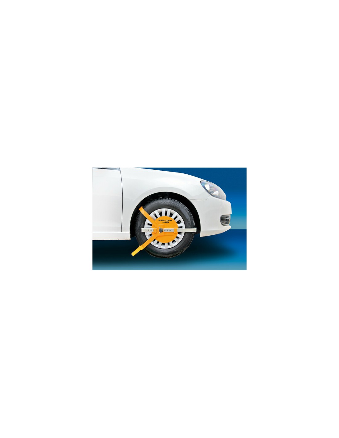 • Es wird an einem Vorderrad angebracht und blockiert das Fahrzeug, indem es seine Bewegung verhindert.