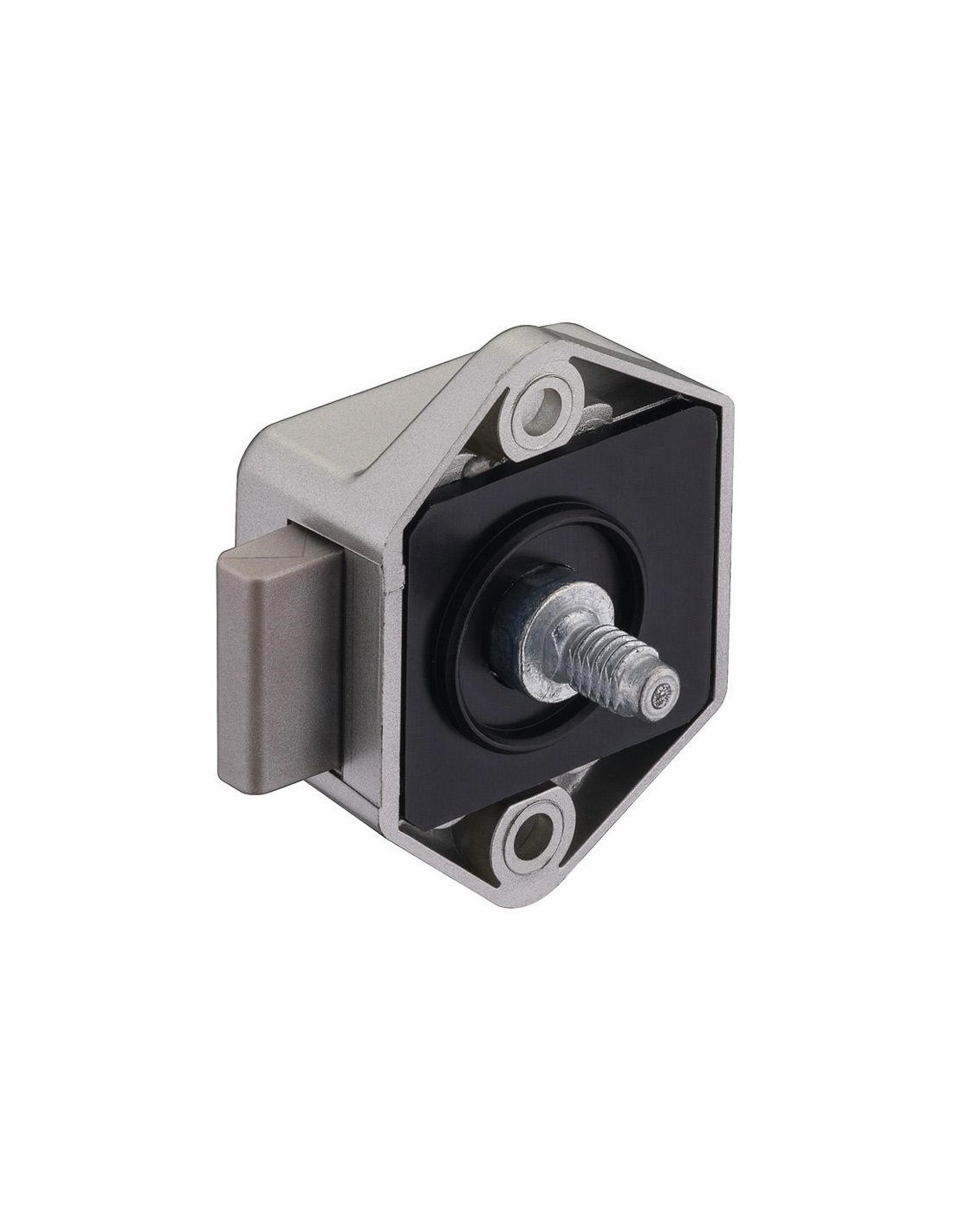 Einseitiger Mini Push-Lock mit Druckknopfverschluss zum Anschrauben an rechts oder links schließende Schranktüren.