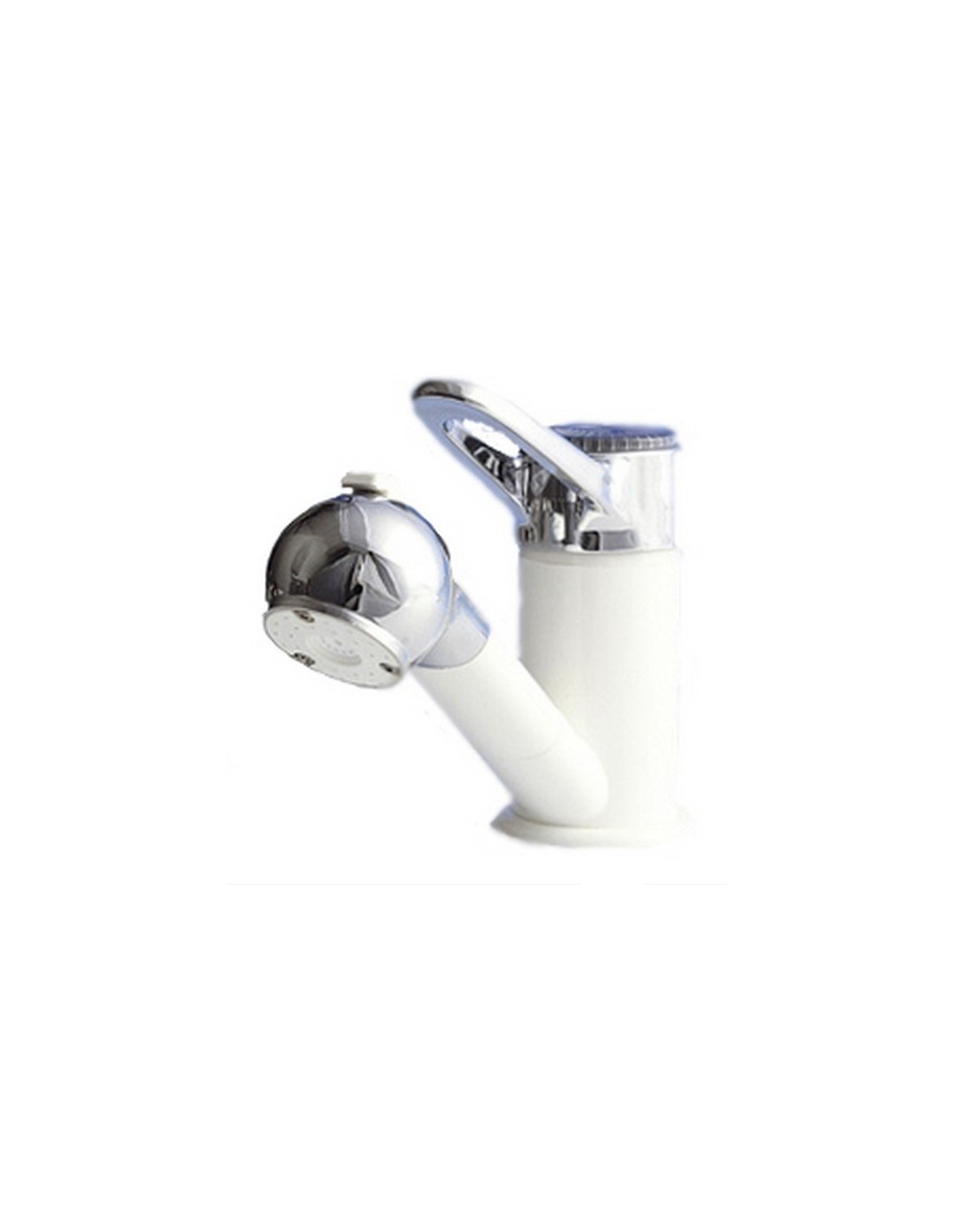 PRESTIGE automatischer Mischer weiß/verchromter Schlauchanschluss mit ausziehbarem Duschkopf