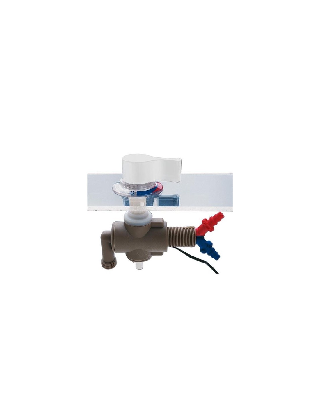 REICH - STYLE2000 Untertischmischer mit weißem Knopfschalter ohne Ringmutter über roter und blauer Oberseite