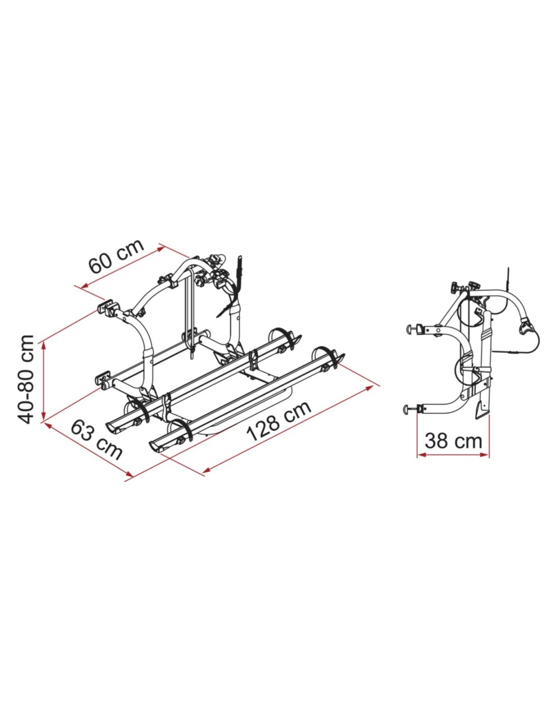 Es ist der klassische kompakte Fahrradträger für alle Wände, ideal sogar unter dem Heckfenster des Wohnmobils zu installieren, sodass er geöffnet werden kann; Es ist das kompakteste auf dem Markt.