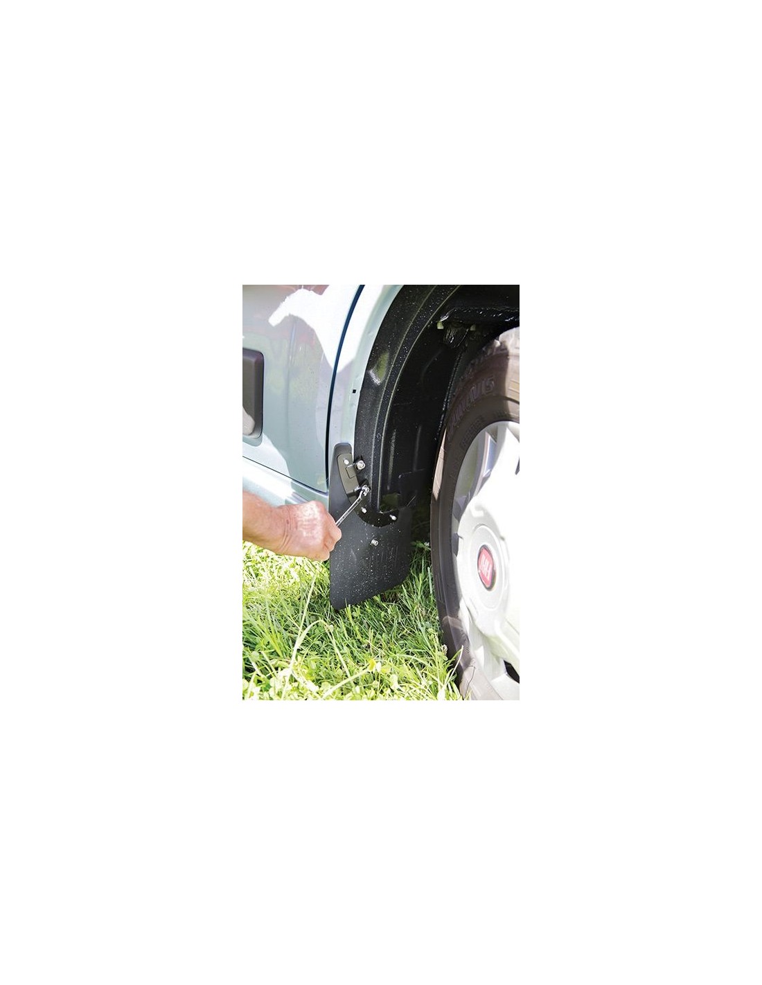 Ein Paar Spritzschutzvorrichtungen für eine einfache und bequeme Installation. Hergestellt aus festem, aber flexiblem Gummimaterial, komplett mit lackierter Stahlhalterung.
