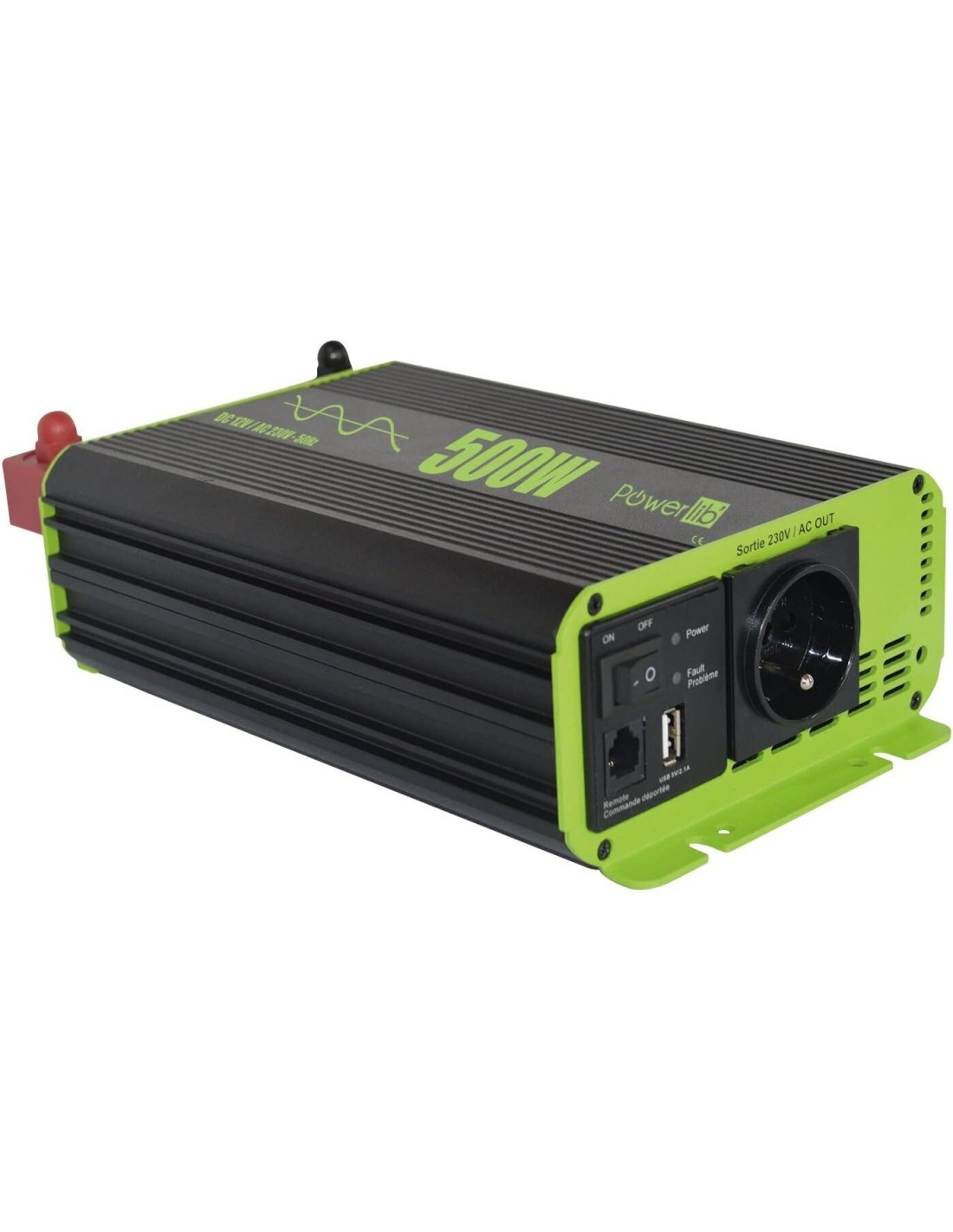 POWERLIB - Reiner Sinus-Wechselrichter 12 V 500 W mit SCHUKO-Steckdose, Fernbedienungspanel.