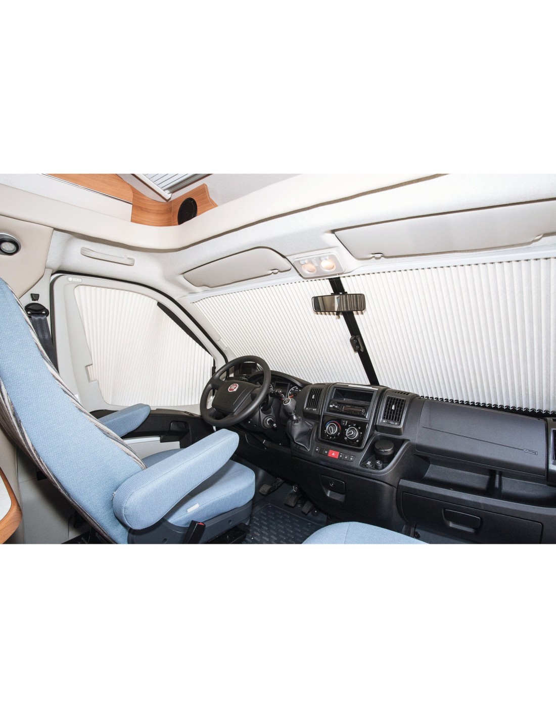Die maßgeschneiderte Verdunkelungslösung für die Fahrerkabine schützt dank perfekter Verdunkelung vor neugierigen Blicken und vergrößert den Wohnbereich im Wohnmobil...