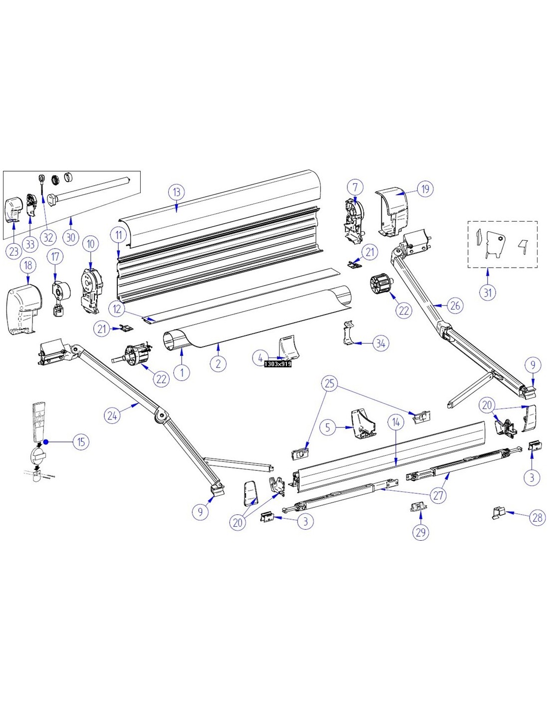 THULE 8000 Serie Paar Armstützen 1500601298 Entspricht Punkt 25 der beigefügten Zeichnung.
