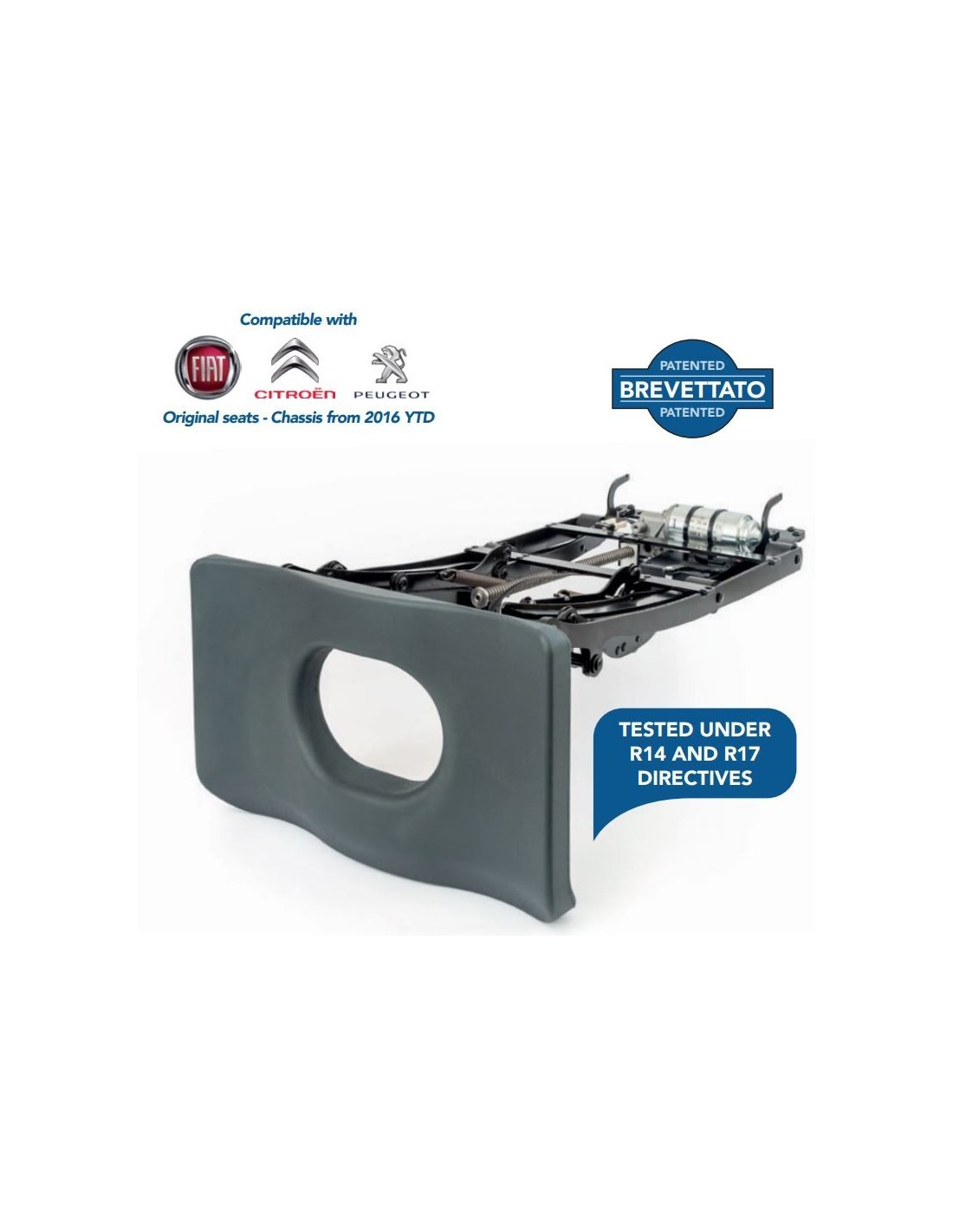 Das RSS wurde für den Einbau in die Originalkabine des Fiat Ducato, Citroën Jumper und Peuoget Boxer ab 2016 entwickelt, ohne dass es zerlegt werden muss. Das RSS wird einfach durch Drehen des Sitzes und Drücken der drahtlosen Fernbedienung aktiviert, die das elektrische Anheben des Systems ermöglicht der Fußstütze und verwandelt so einen Sitz in einen echten Relaxsessel.