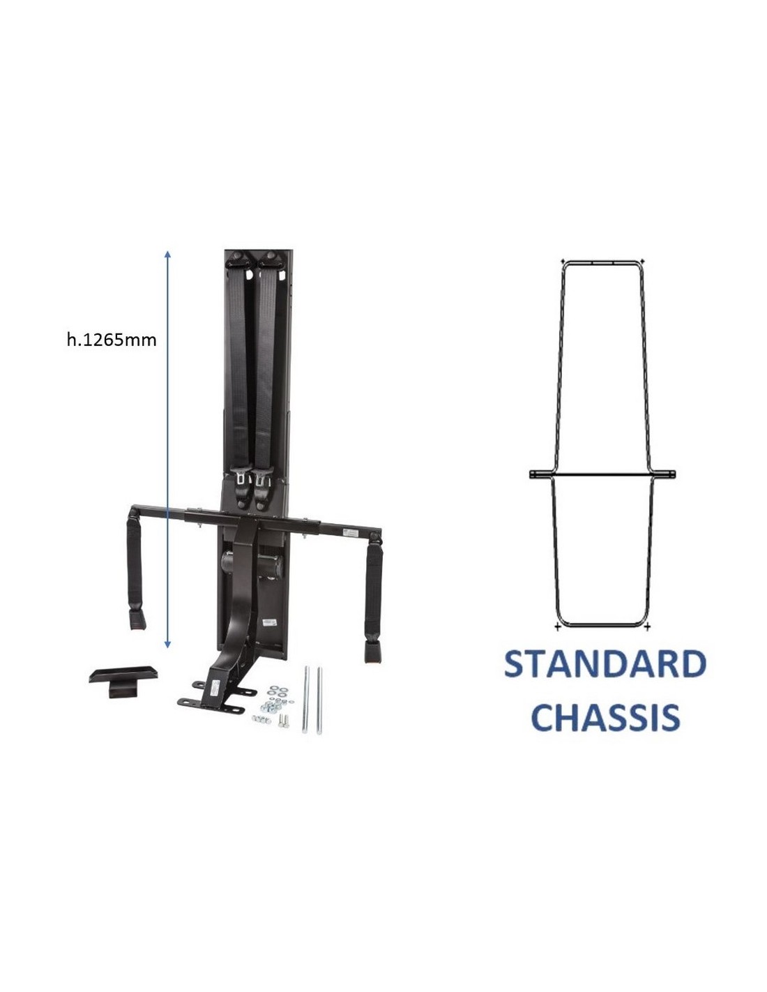 Jeder Bausatz umfasst eine nach vorne gerichtete Oberstruktur mit vormontierten Sicherheitsgurten, Bodenverankerungshalterungen, einen Schraubensatz zur Befestigung am Fahrgestell und eine Montageanleitung.