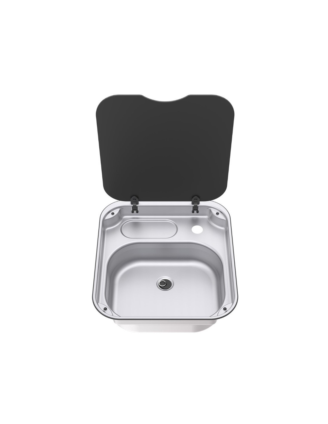 Die Linie 34 besteht aus einer Edelstahlspüle mit Glasdeckel und Ablaufloch in absoluter Qualität.
