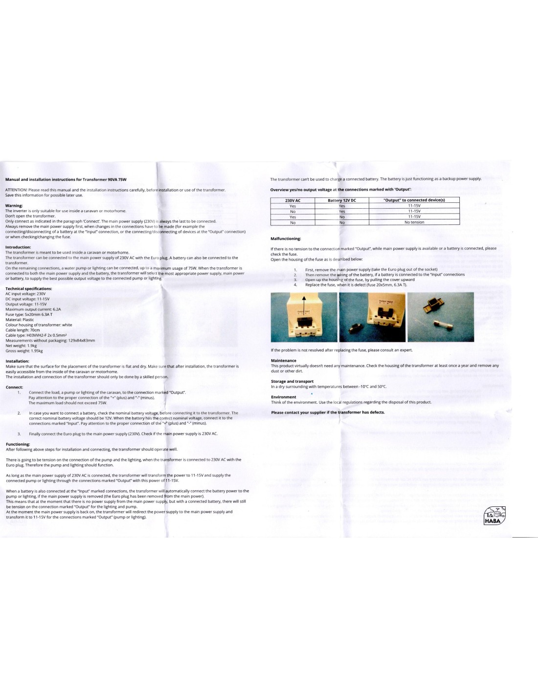 75W TRANSFORMATOR von 230VAC auf 12VDC