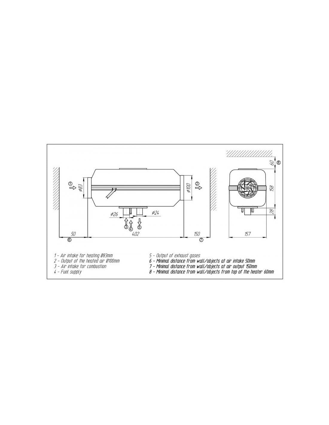 El juego de montaje, que forma parte del paquete, ya contiene todo lo necesario y permite instalar el calentador en prácticamente cualquier vehículo.