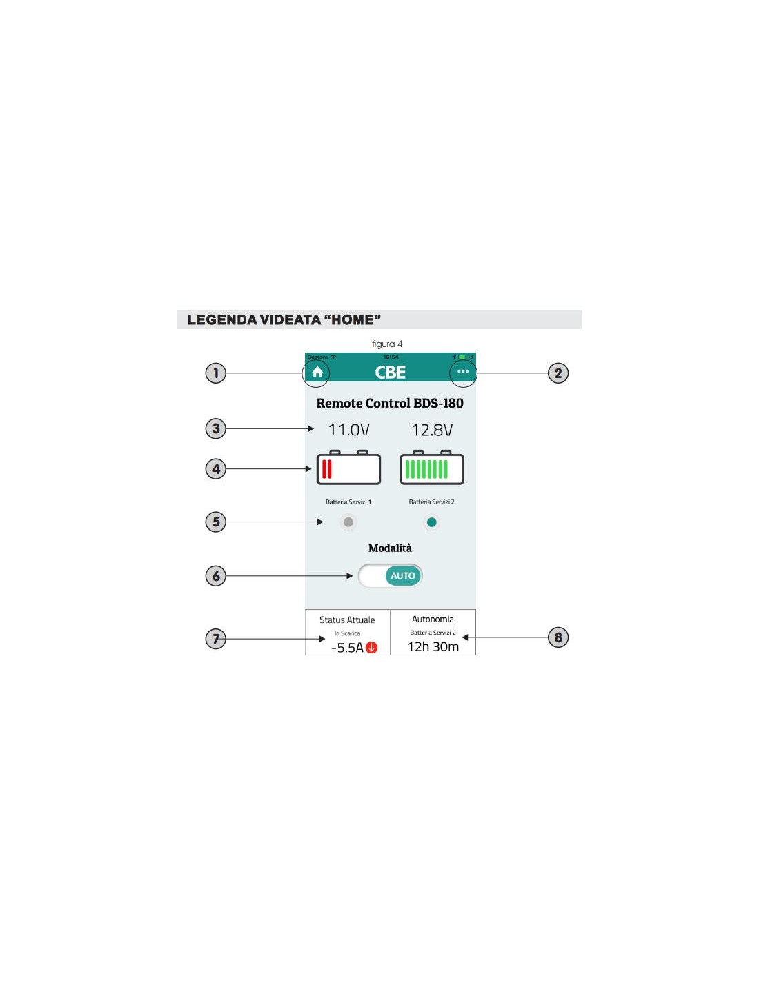 - posibilidad de desconectar eléctricamente ambas baterías de servicio (en caso de períodos prolongados de inactividad) mediante el interruptor ubicado en el aparato o mediante un interruptor remoto