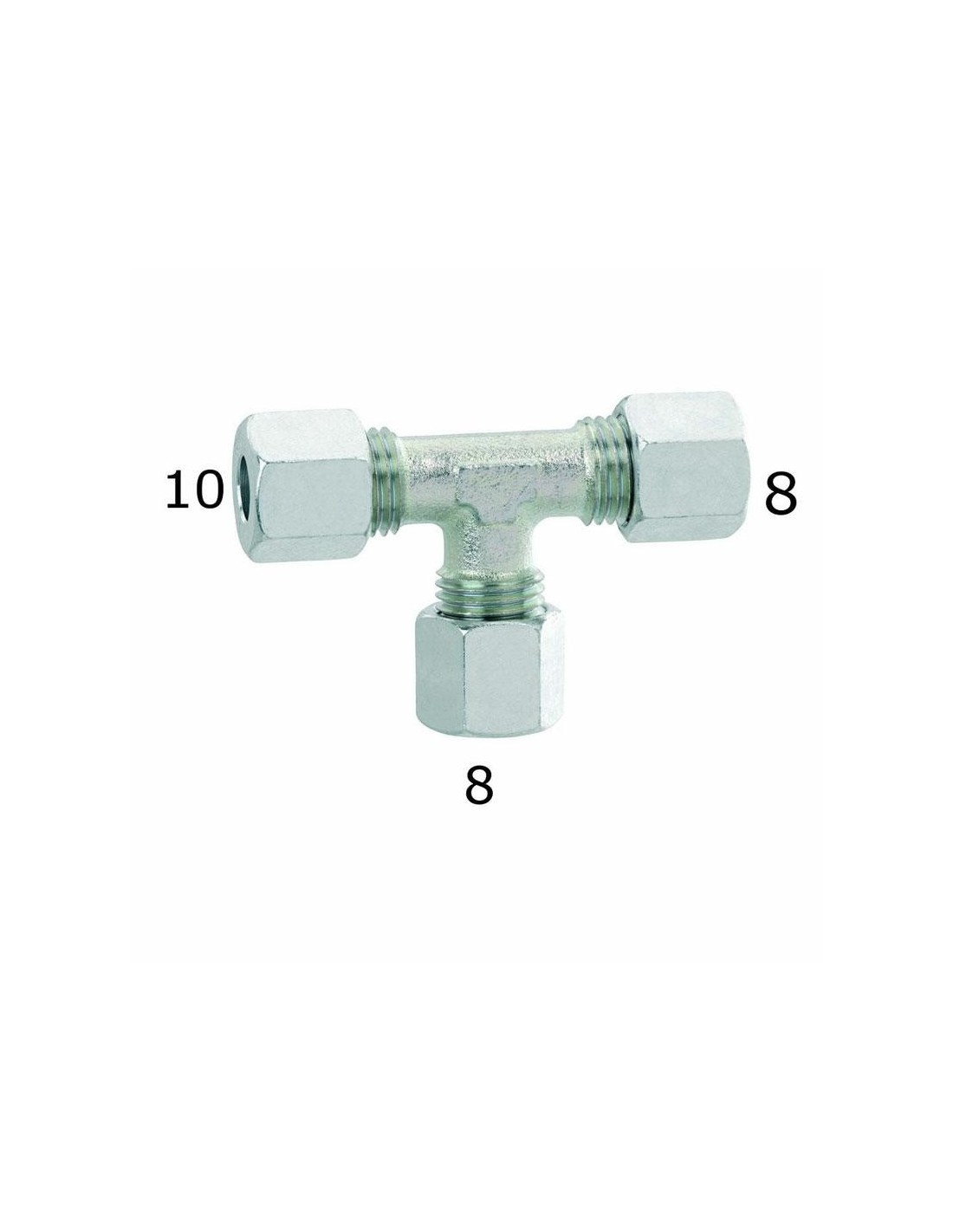 Racor T gas de acero galvanizado para tubo de cobre Ø 8/8/10 mm