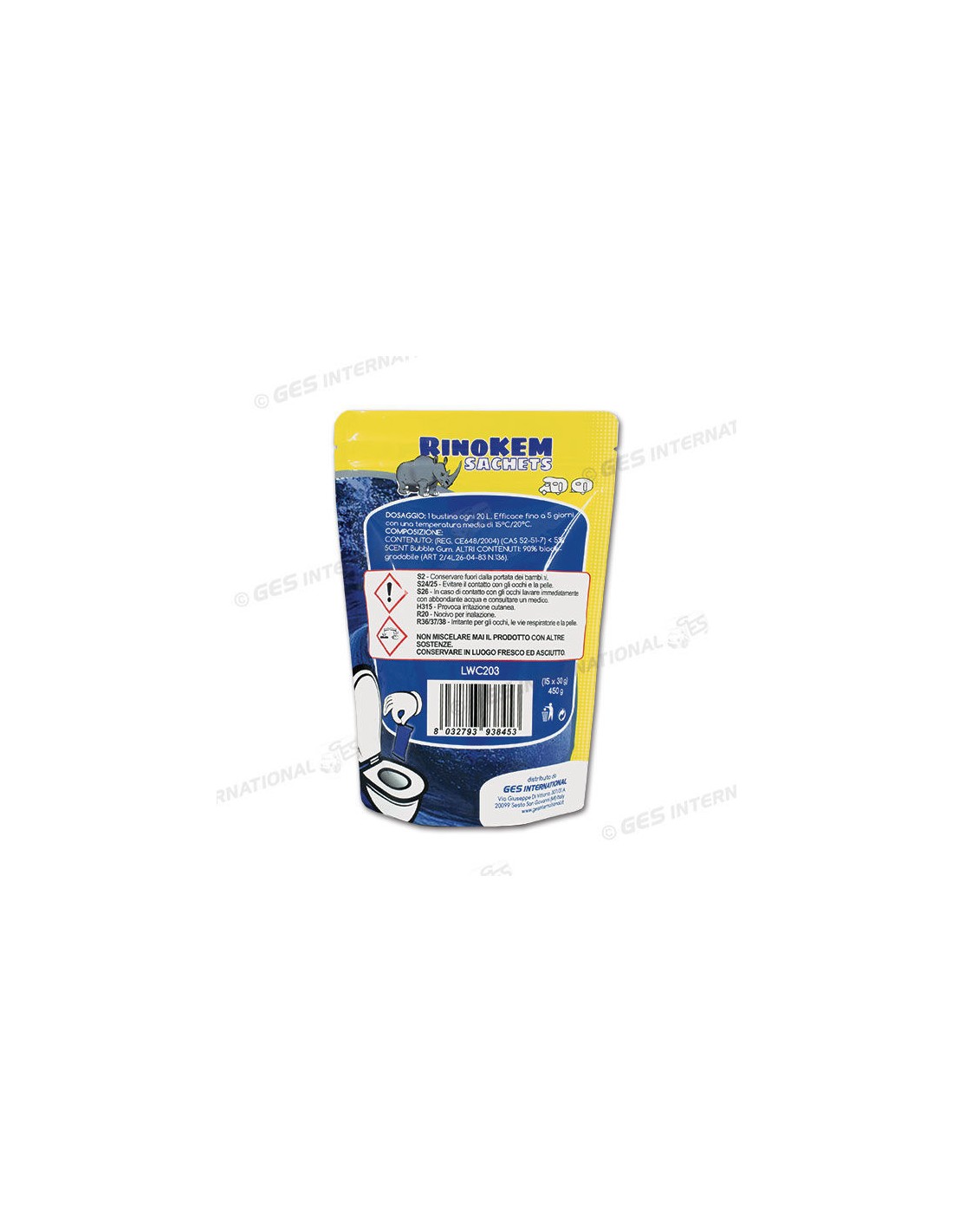 RinoSachets Polvo desintegrante diseñado para cisternas de inodoro de 20 litros, con una agradable fragancia a cereza.