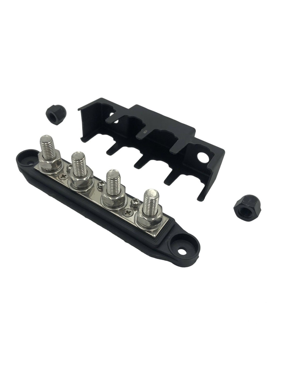 6 plazas BUSBARS mini 100A - Certificación CE Muy útil para conexiones en espacios reducidos. Voltaje máximo 48V CC Número de tornillos 6 con rosca 8/32 Capacidad 100A CC Material de la barra: cobre estañado CDA110/UNS1100
