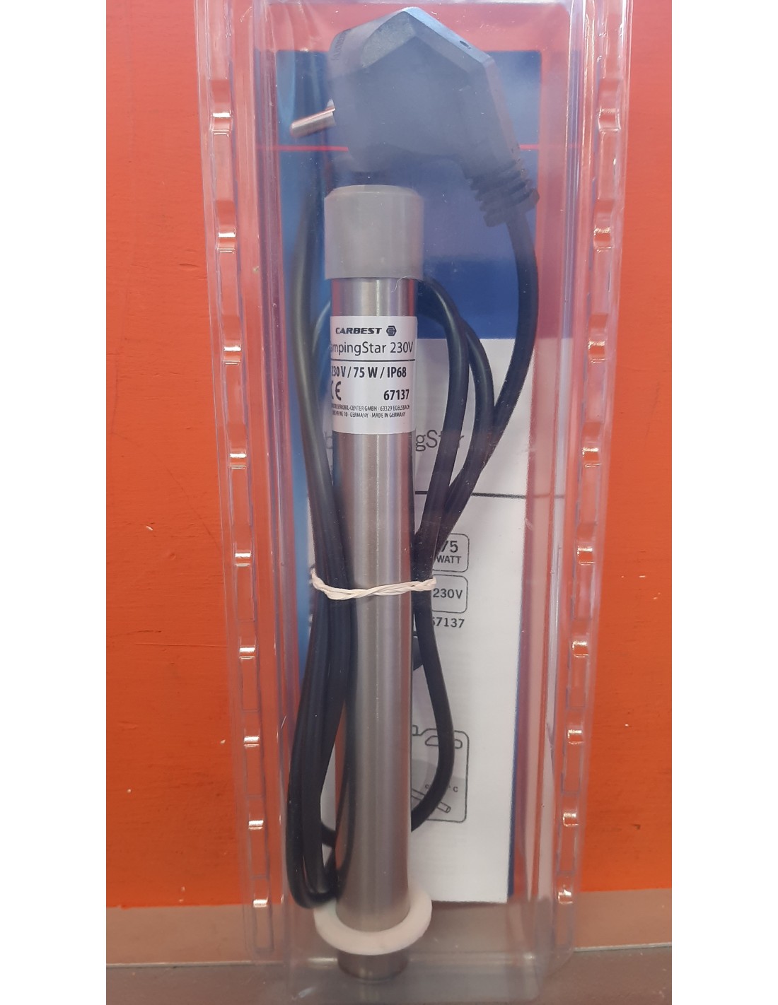 Calentador de agua eléctrico - Varilla calefactora para agua caliente en depósitos Carbest Campingstar 230 V 75 W, temperatura 3
