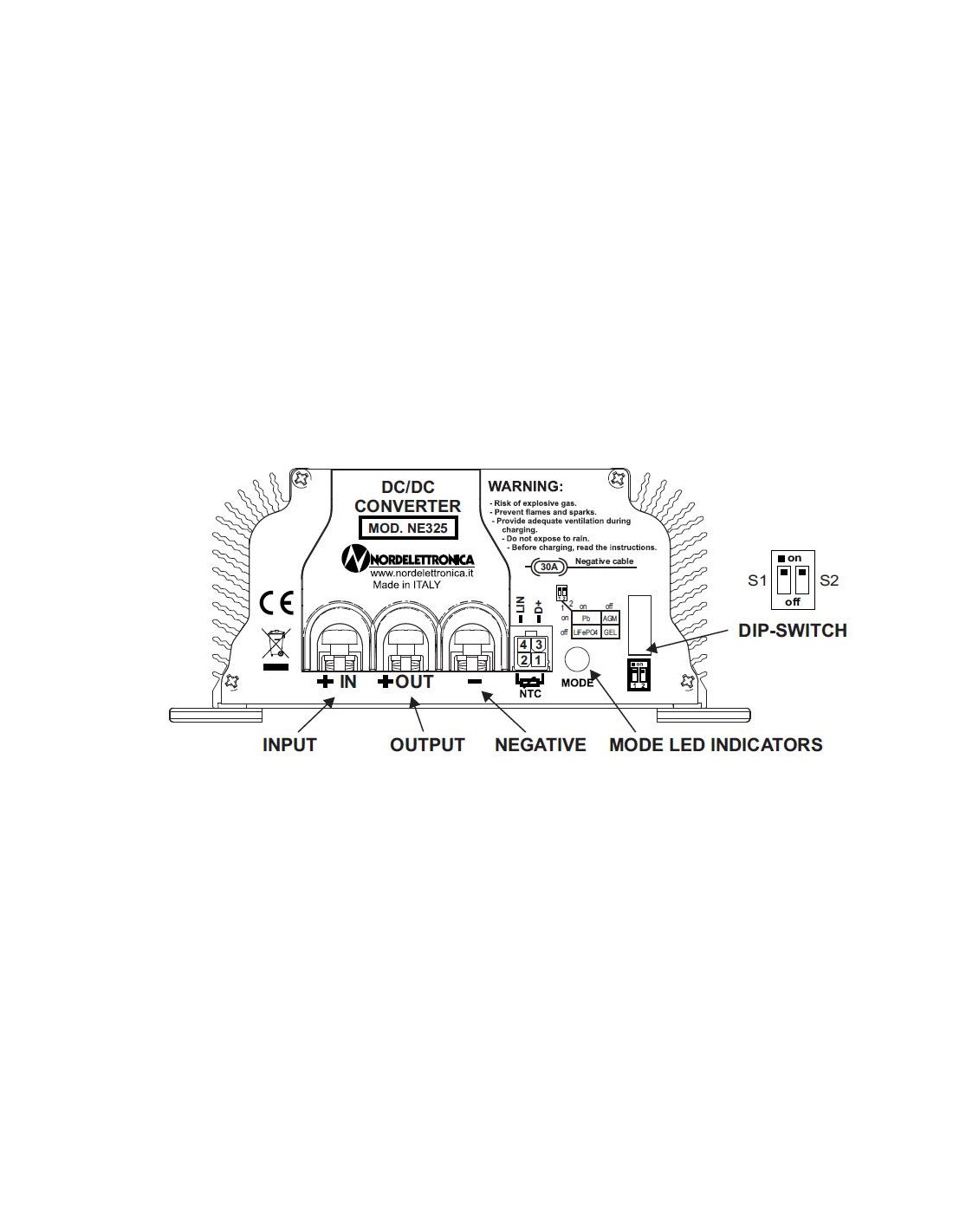 Nordelettronica NE325 - DC/DC POWER CONVERTER - Booster di carica batterie 12V 40A - 000.325.02