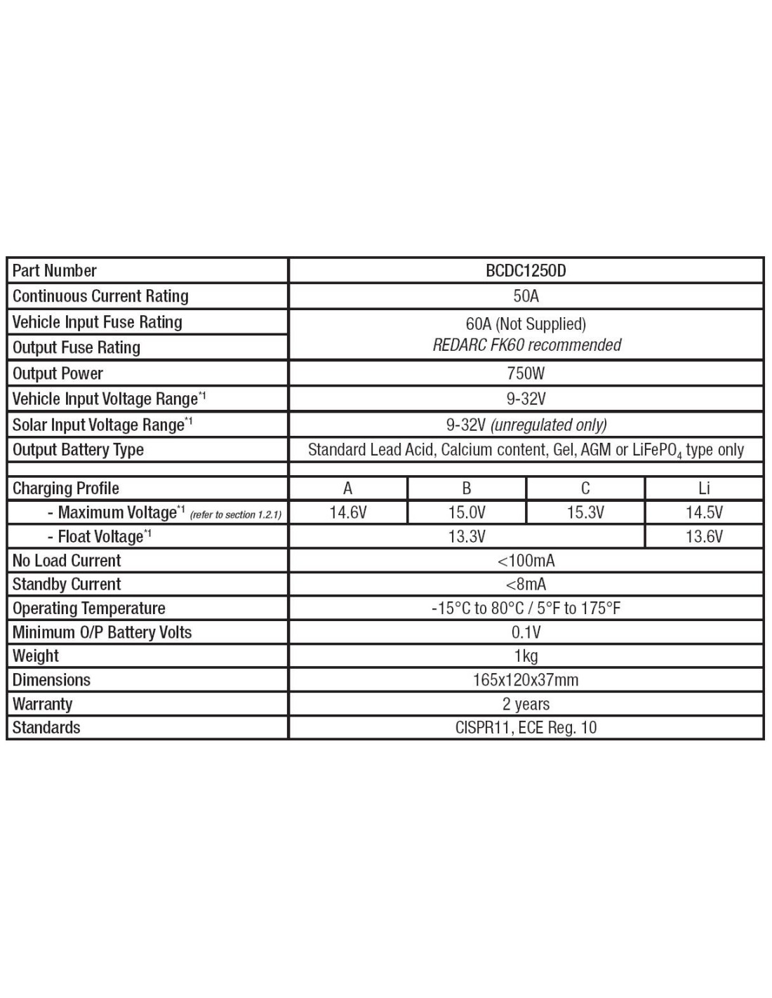 - La salida de 50 amperios lo convierte en el más potente de la gama BCDC de REDARC.