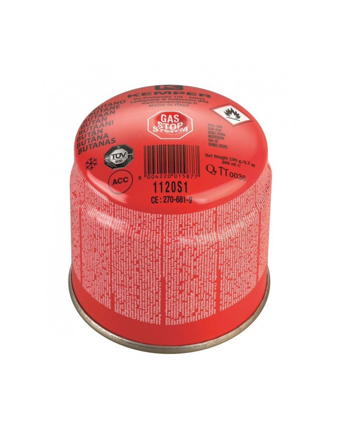 Cartucho de gas con válvula 230 gr KEMPER conexión rosca 7/16" Cartucho 230 gr. con válvula. Contiene una mezcla de 30% propano/70% butano. Probado según EN 417. Válvula roscada de 7/16 pulgadas.