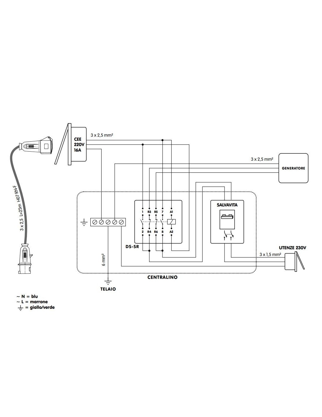 Relé de intercambio 230V 25A para red/generador o red/inversor.