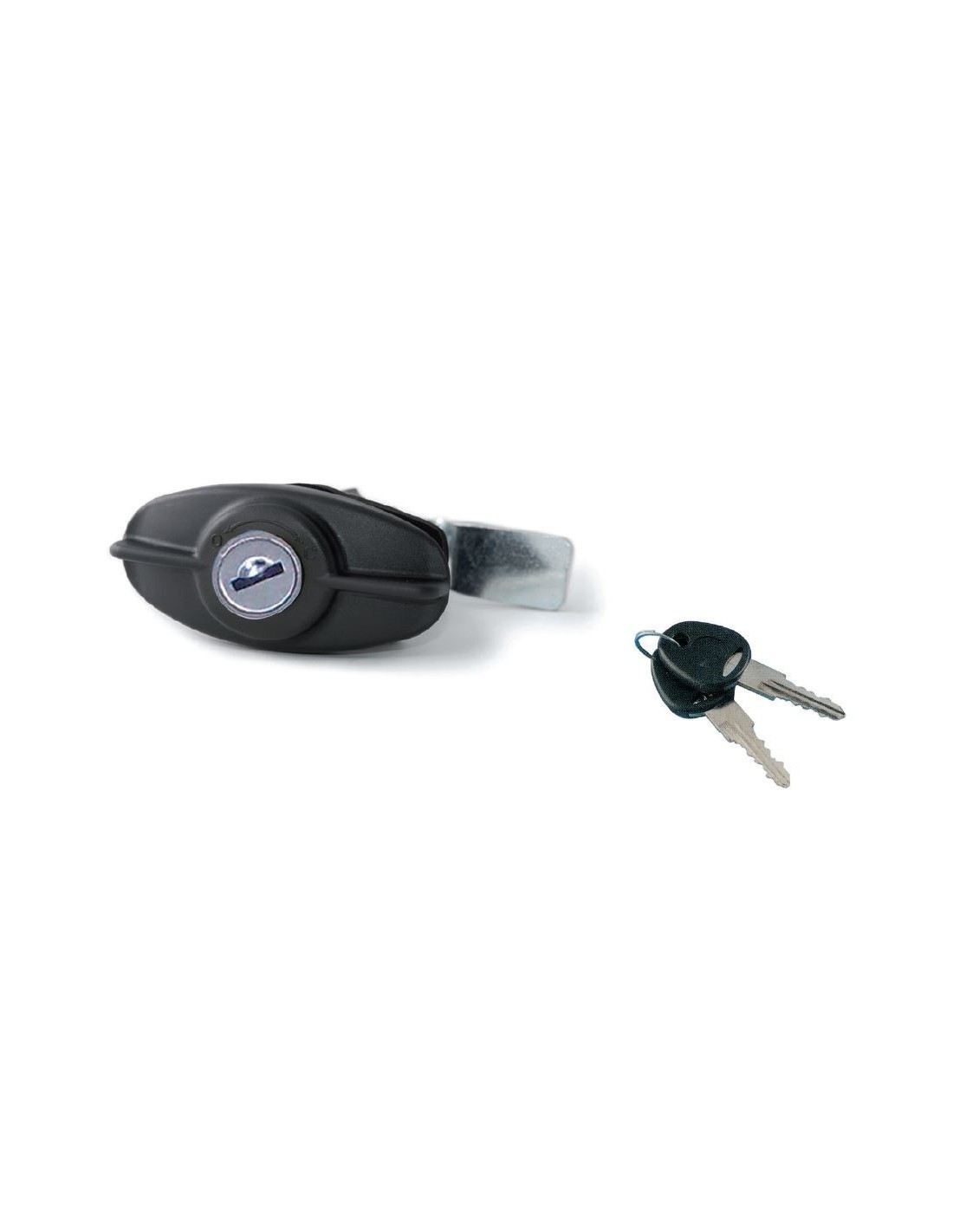 Cerradura de compresión con gancho 1140 FAP OPERA negra con cilindro y llaves Nuevo Sistema Cerradura de portón trasero tipo gancho. Tope ajustable de 6 mm a 36 mm. Espesor mínimo de puerta 23,6 mm. Distancia entre ejes: 70 x 43 mm.