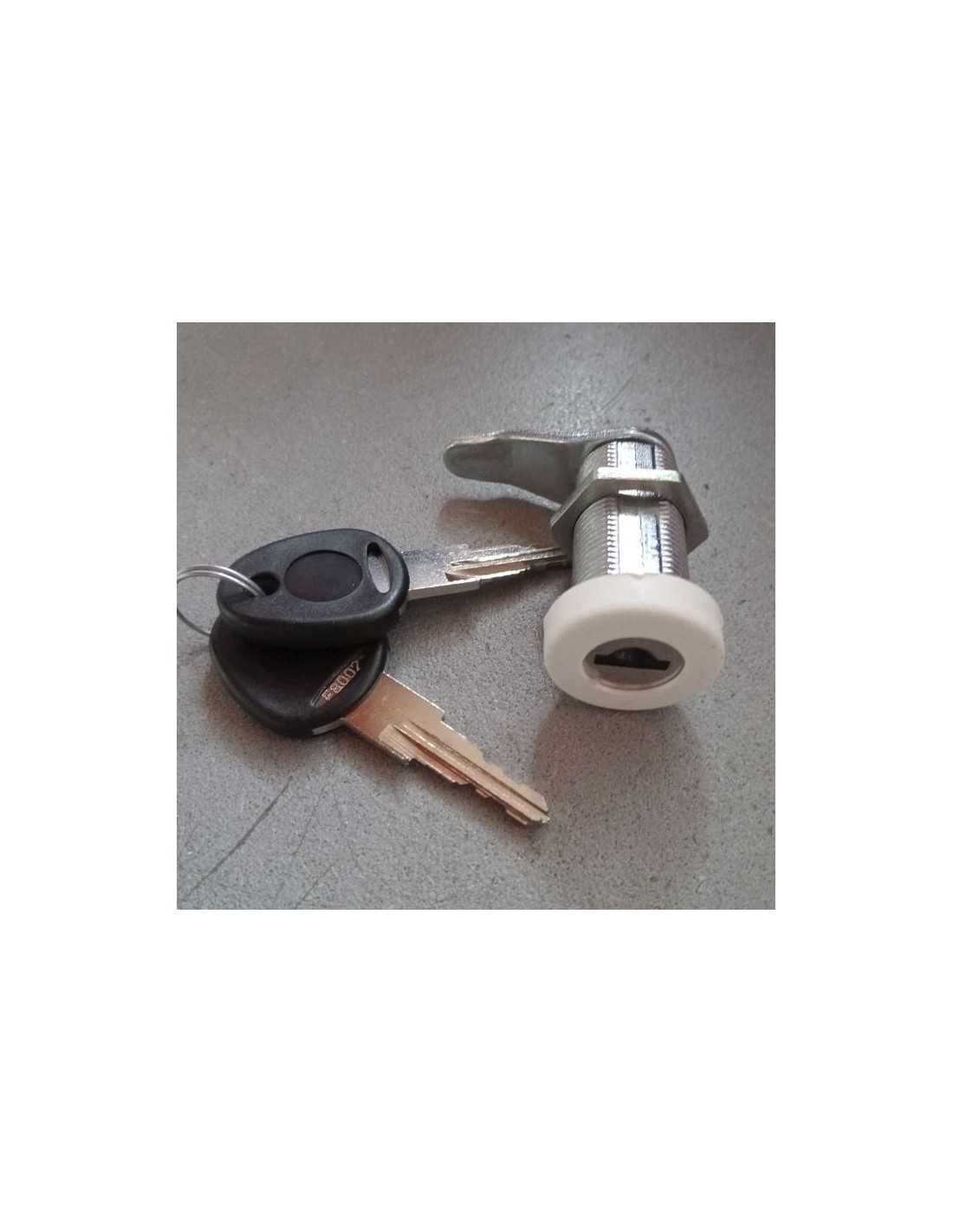 Serratura FAP con cappuccio in plastica NERO, corpo in metallo, per portelloni. con leva piegata, 2 chiavi HS.