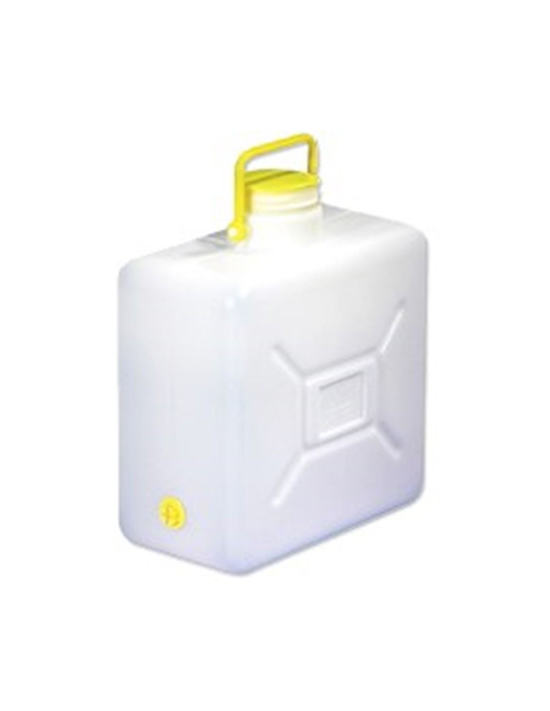 Depósito de agua de 10 litros de boca ancha con tapón de cierre DIN96 y grifo Material de polietileno natural. Dimensiones 36x27x14 cm Capacidad 10 litros.