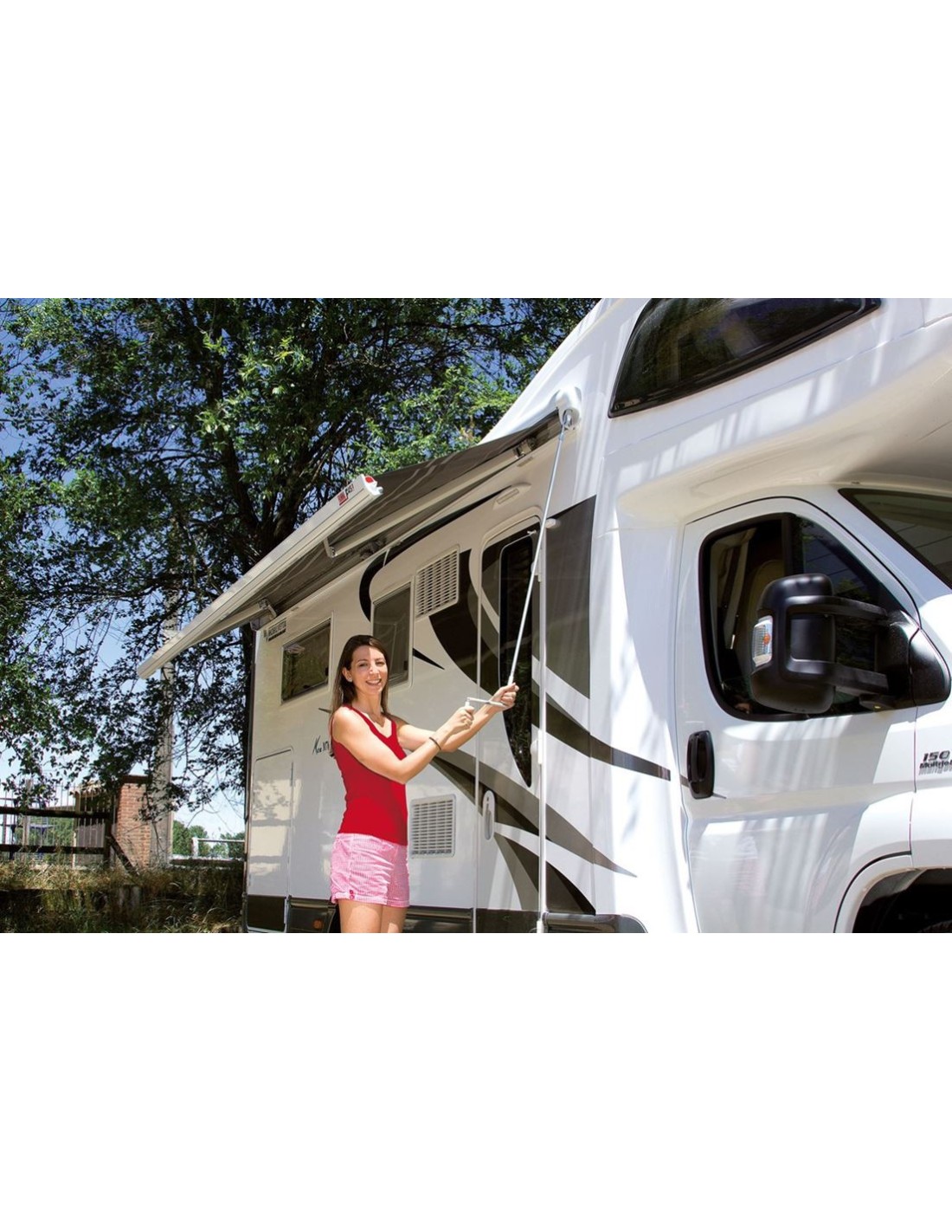 Es el toldo mural con cofre sobredimensionado y enrollable extragrande, apto para autocaravanas grandes.