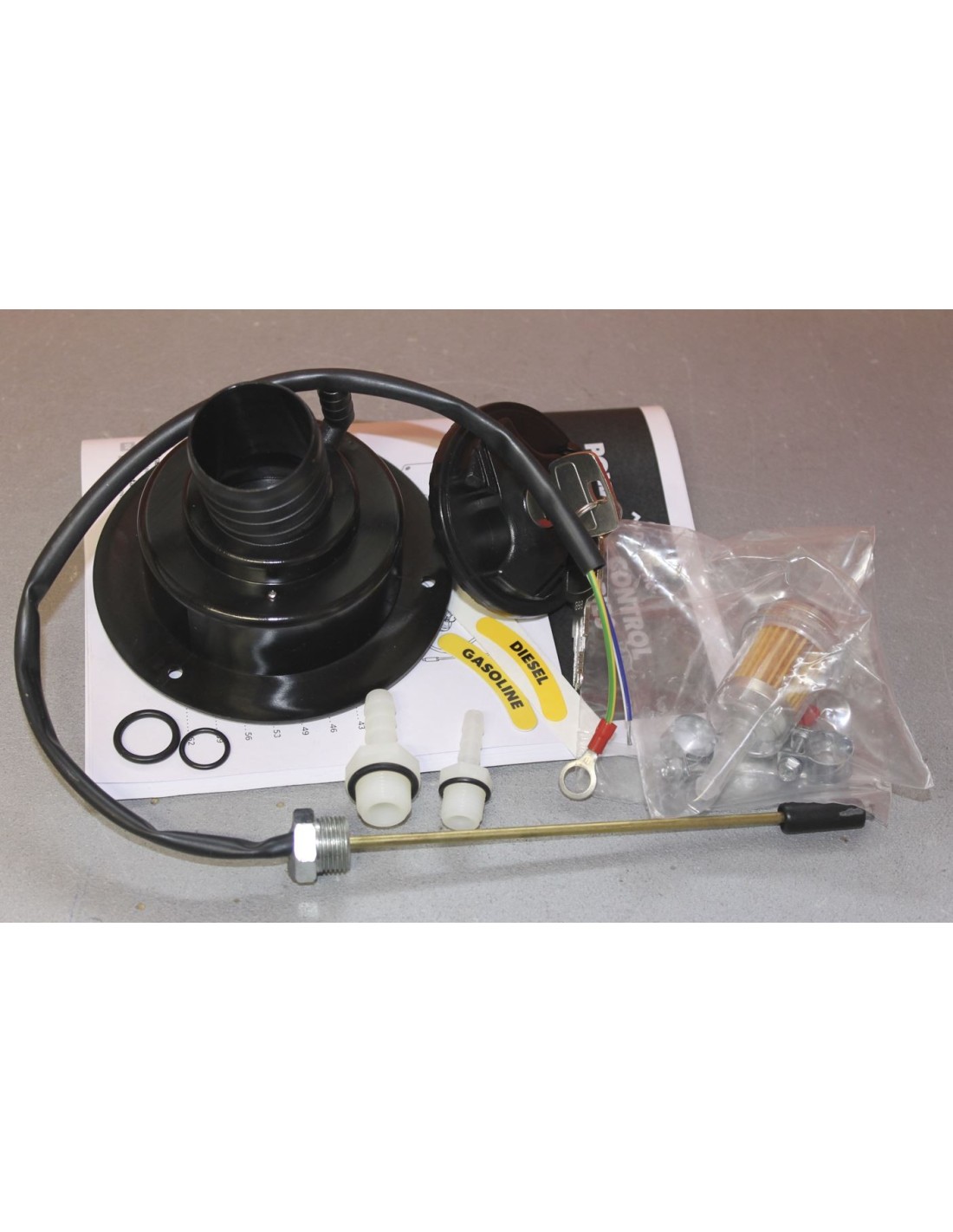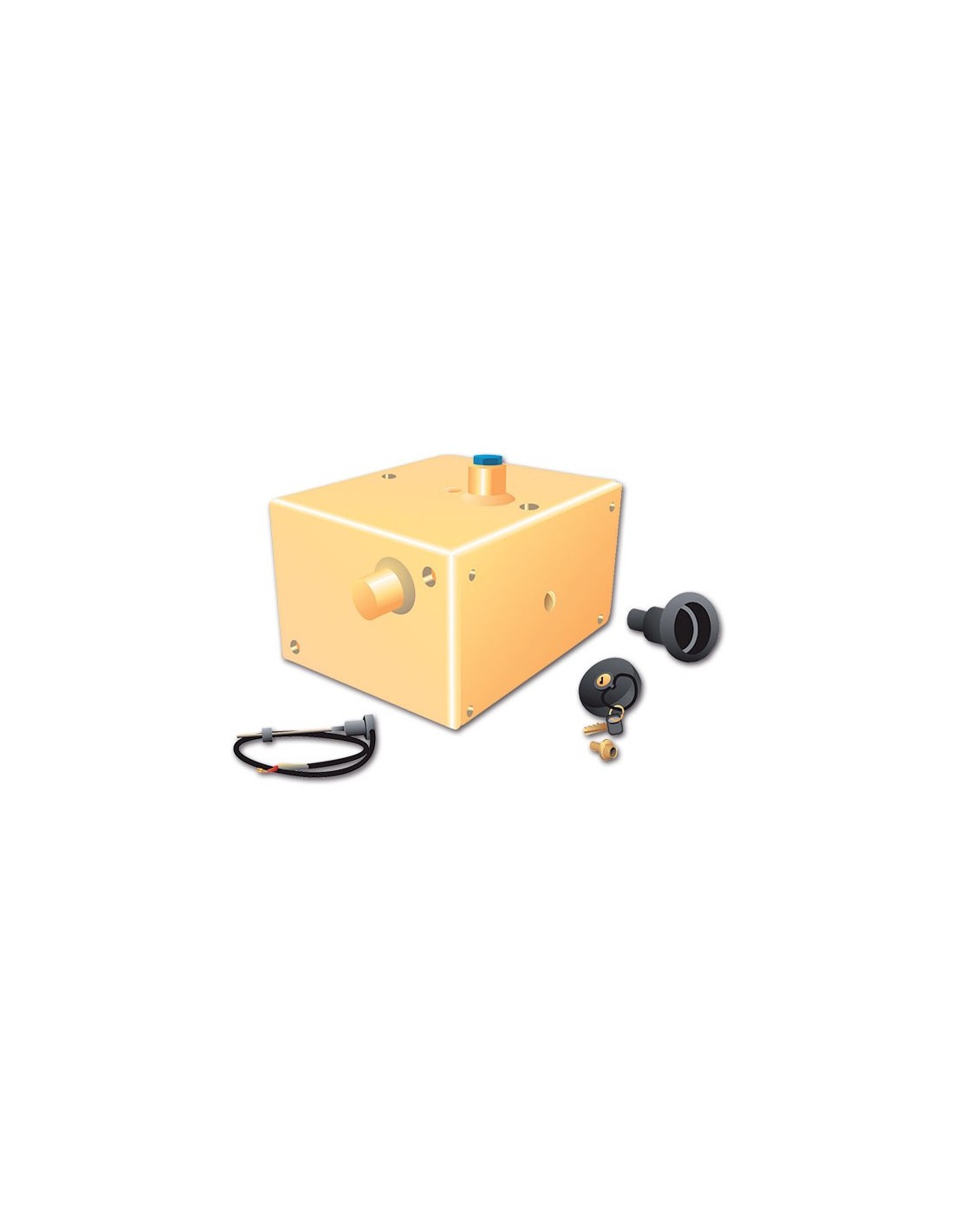 Completo con tapón de llenado con cerradura y flotador indicador.