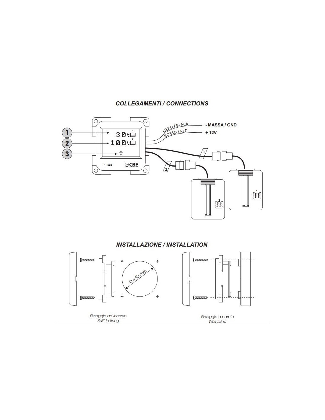 NOTA: el panel "PT622" sólo funciona con la sonda CBE SPE (debe pedirse por separado) y debe conectarse a ella mediante el cable suministrado (L=4m).