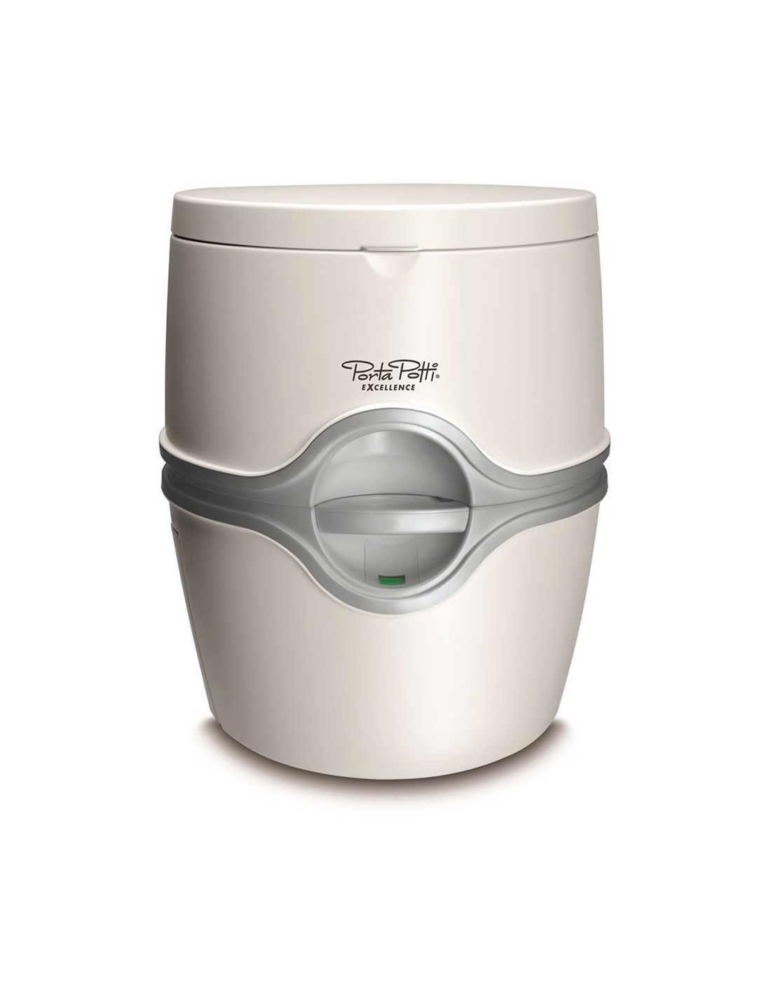 Porta Potti Excellence cuenta con el diseño más característico de todos los tiempos y está equipado con los accesorios más innovadores. Su diseño ofrece un panel de control integrado con la bomba, la unidad de carga de agua y el indicador de nivel del tanque de descarga ( A - ver imágenes ). Este indicador y el indicador de nivel ( B - ver imágenes ) del depósito de residuos indican cuándo llenar el depósito del inodoro y cuándo vaciar el depósito de residuos. Además, el Porta Potti Excellence suele estar equipado con un portarrollos integrado ( C - ver imágenes ).